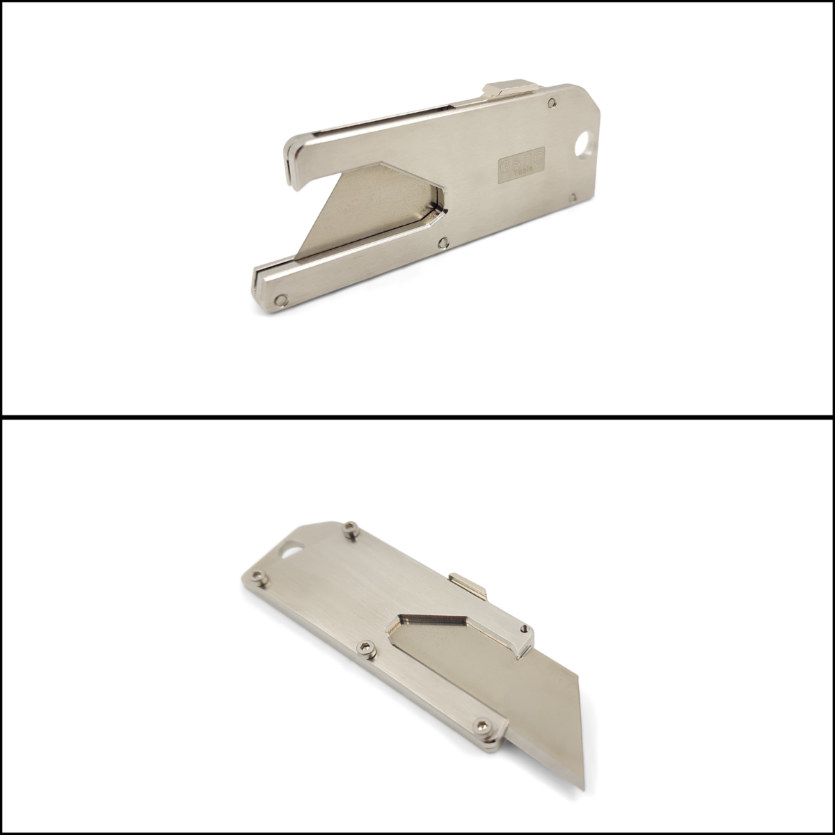 Este es un cutter de bosillo de acero inoxidable retractable. Producto de calidad y super durable. Se puede usar como llavero y tambien abre las botellas, si estas buscando una herramienta chica este es perfecto para ti.