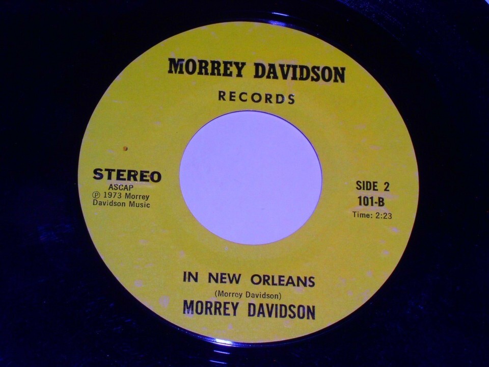 This is a very rare, vintage 45 rpm phonograph record by Morrey Davidson entitled, "Let's Toast The Bartender". Flipside: "In New Orleans". Record label Morrey Davidson 101.
