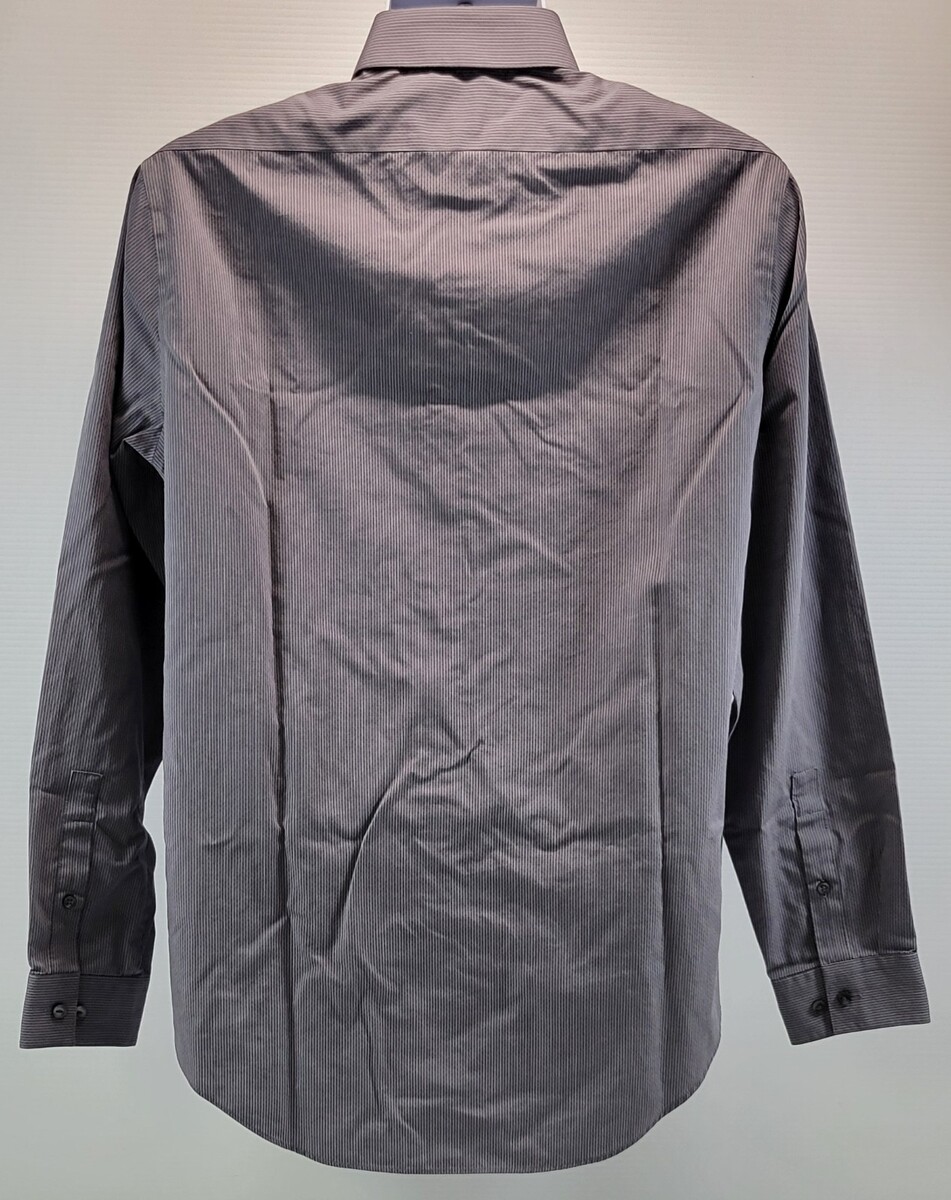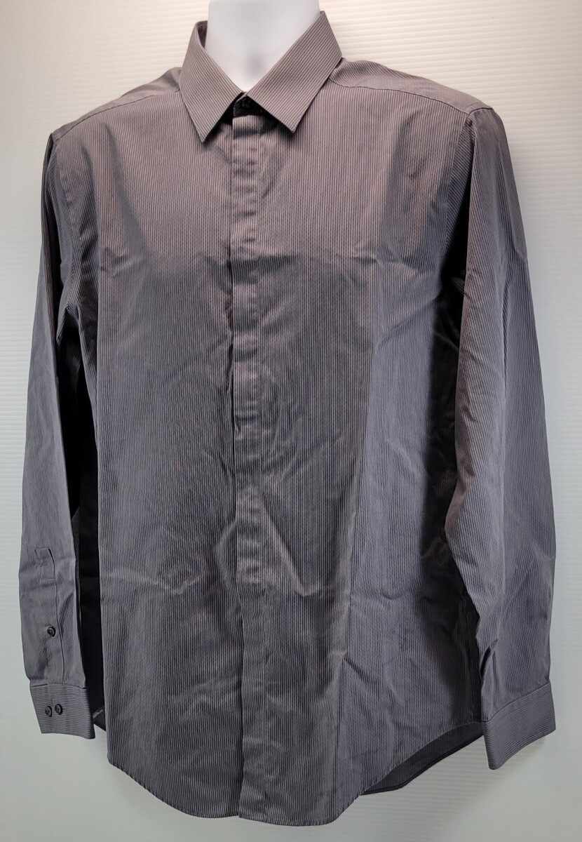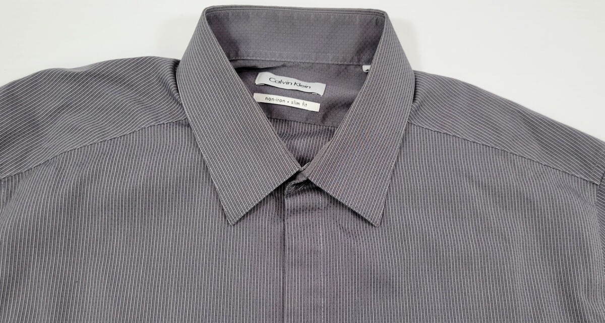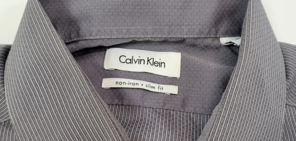 D) Calvin Klein Men Slim Fit Cotton Gray Striped Dress Shirt 16 34/35