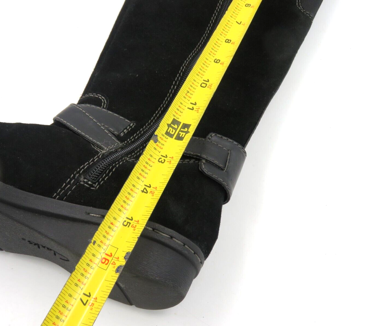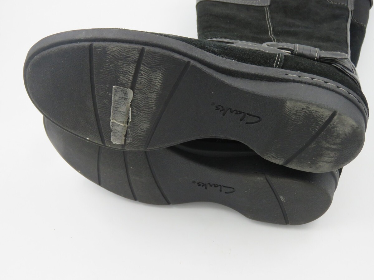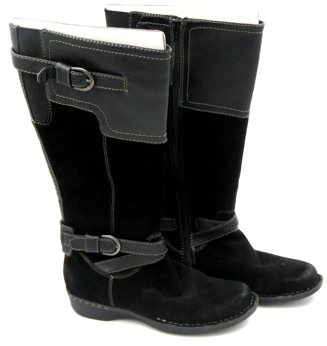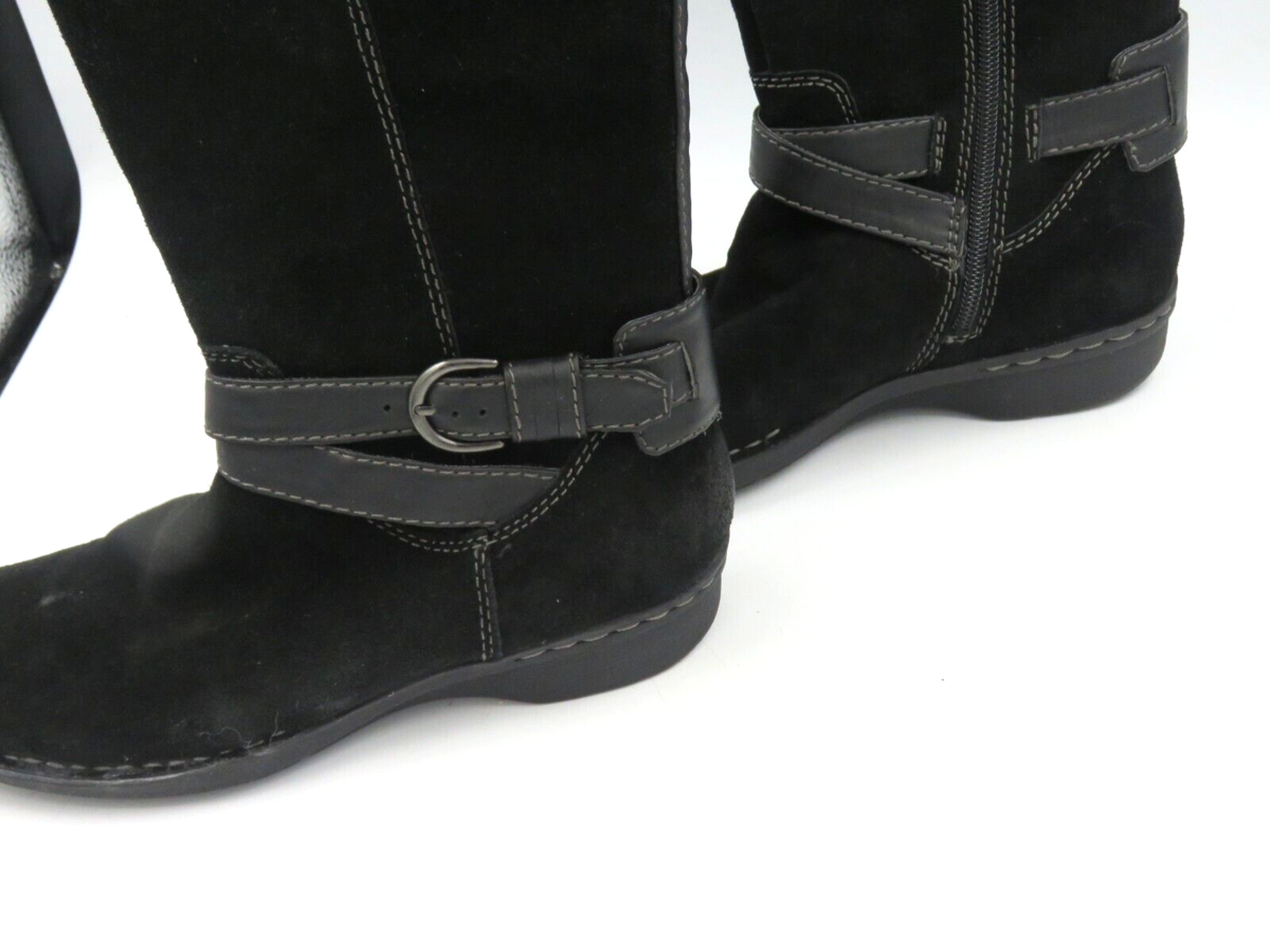 Clarke's Women's Black Suede Boots 26067200 Size 7M Leather 16" Calf Length