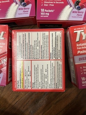 5 Tylenol Children's Pain + Fever Dissolve Packs Berry 18 Packets Each Exp 8/26