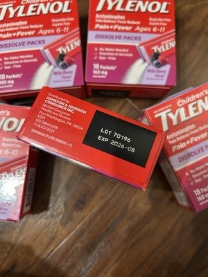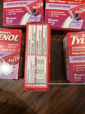 5 Tylenol Children's Pain + Fever Dissolve Packs Berry 18 Packets Each Exp 8/26.