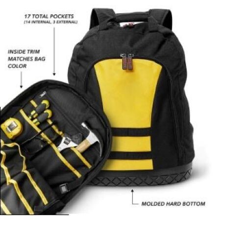Features a large main interior compartment with 14 compartments to keep your tools your tools organized, 3 outside pockets and a molded bottom for an upright stance and in any environment.