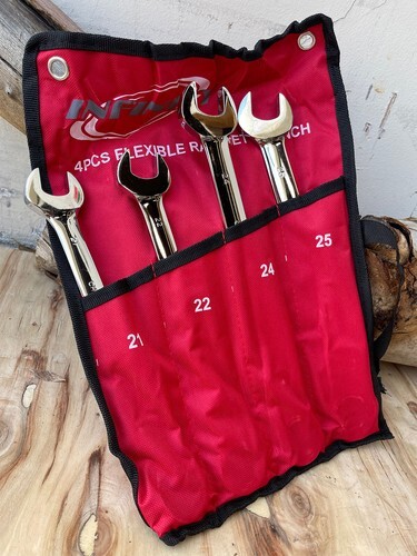 4 pc Flex Head Ratcheting Combination Wrench Tool Set Metric 21 22 24 25 mm