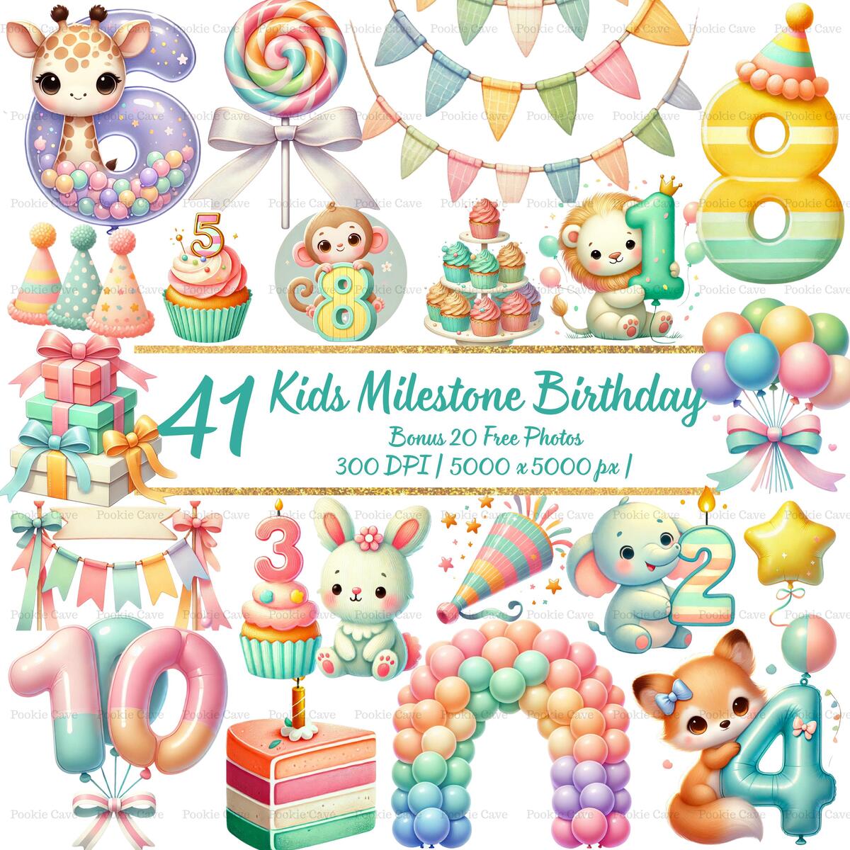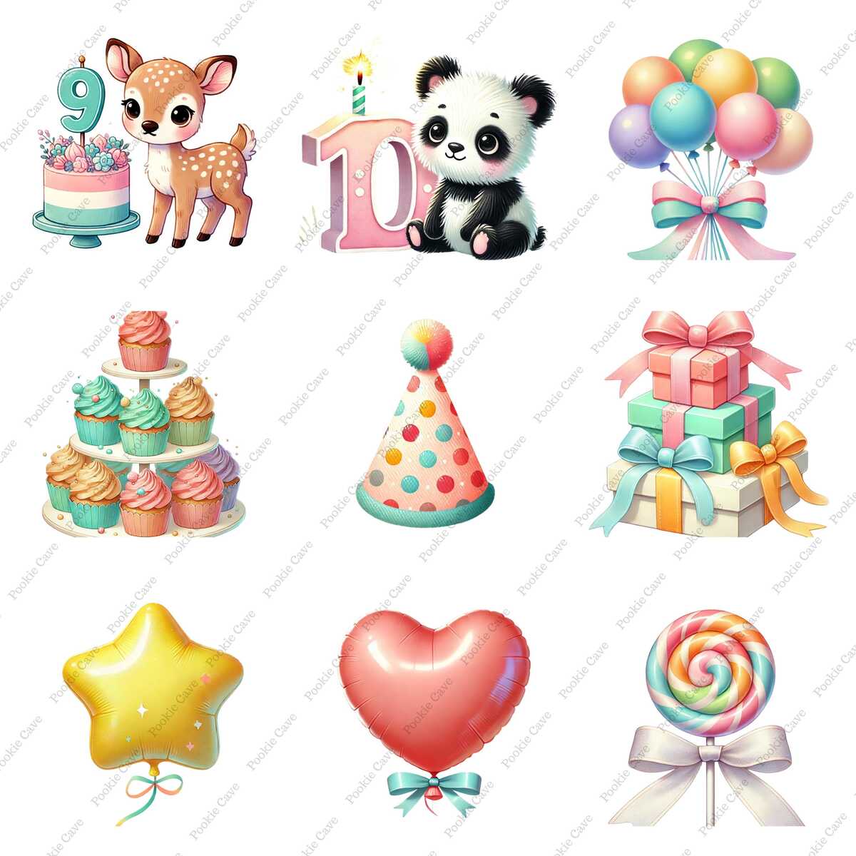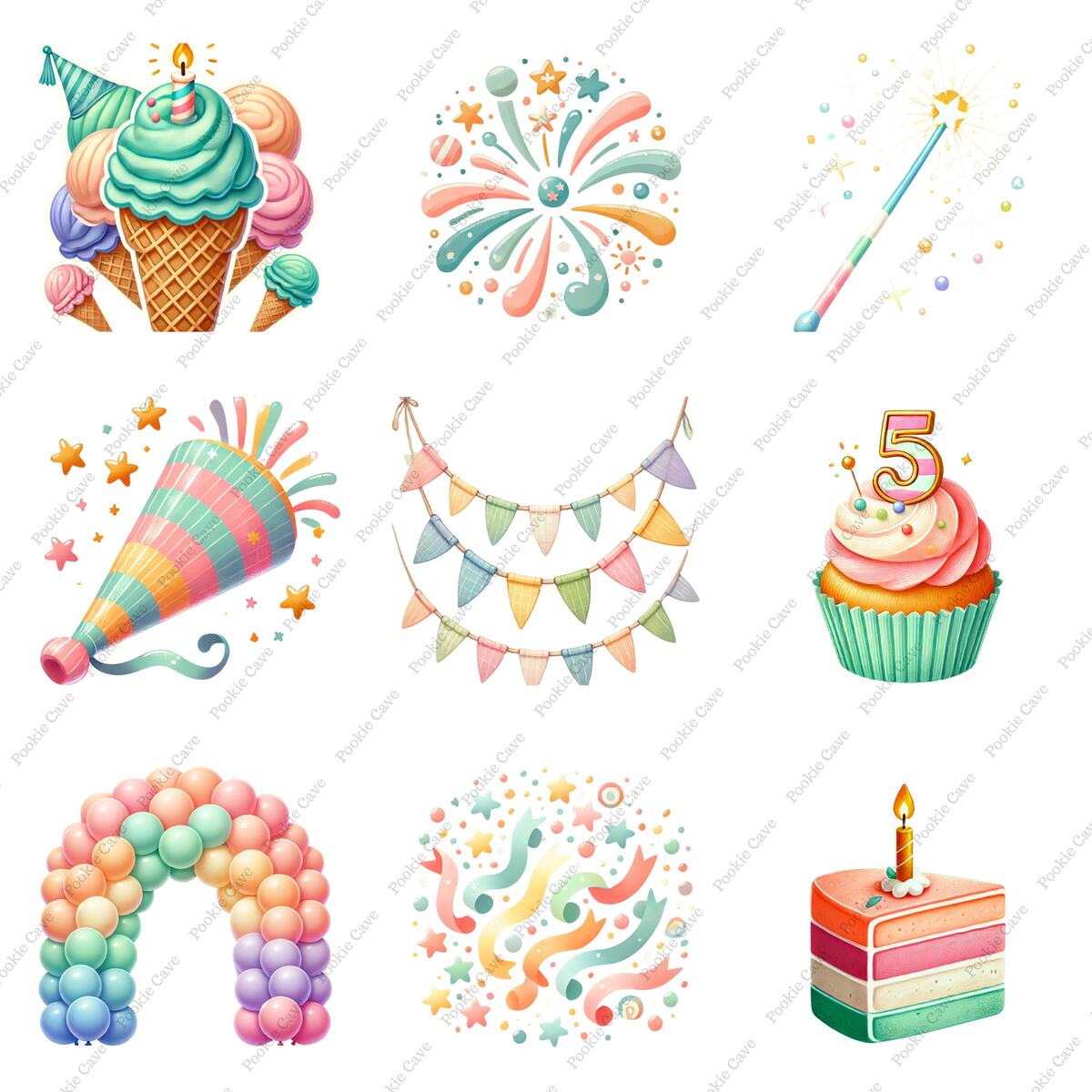 Kids Birthday Clipart | Pastel Watercolor and 50 similar items