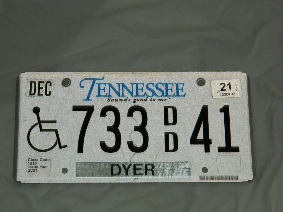 Vintage Tennessee Expired Issued 2001 Handicapped Metal License Plate # 733DD41
