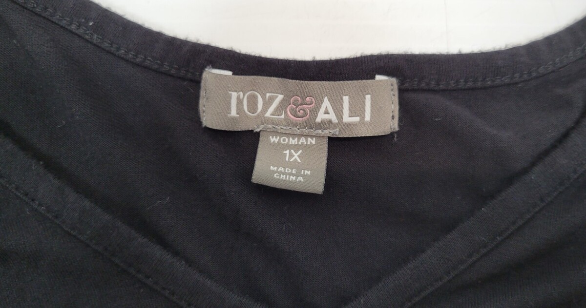 MT) Roz & Ali Woman 1X Black Pullover V-Neck Shirt
