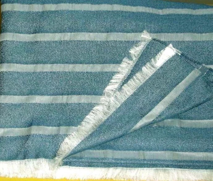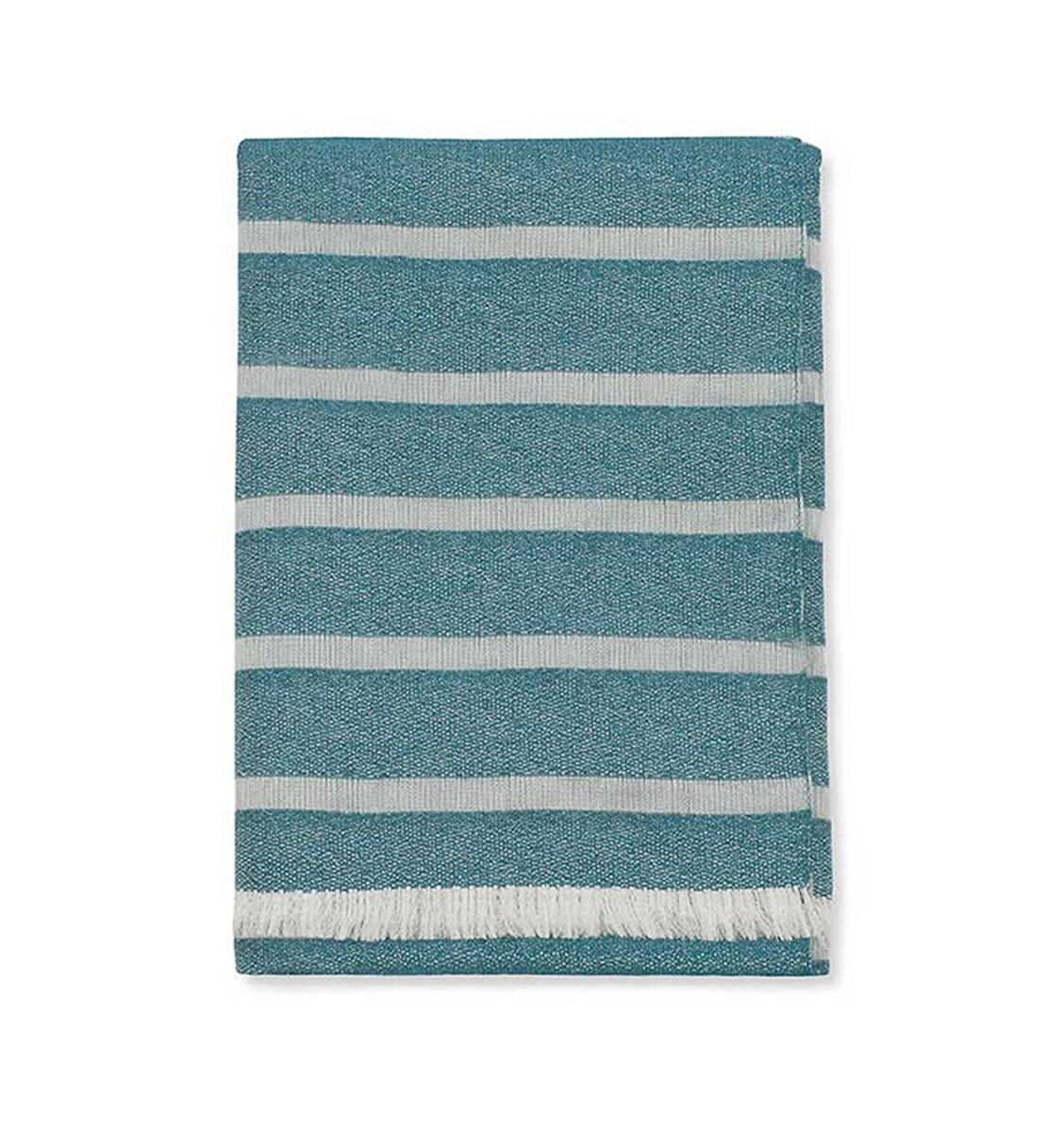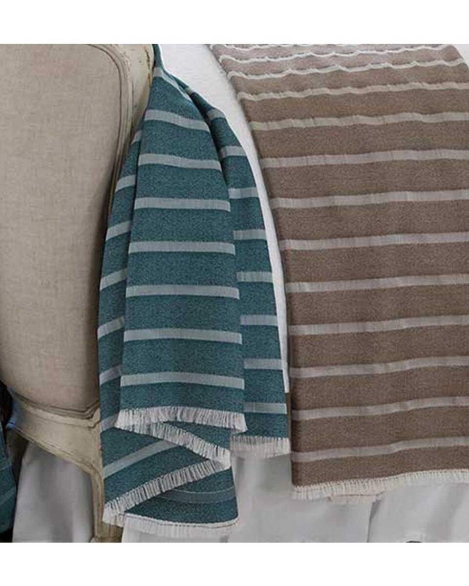 Sferra Marice Blue Throw Blanket Peacock Dobby Stripe Fringe Wool Silk Italy NEW