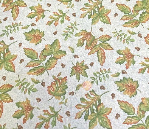 Cotton Harvest Leaves Leaf Acorns Fall Autumn Cream Fabric Print by Yard D514.65