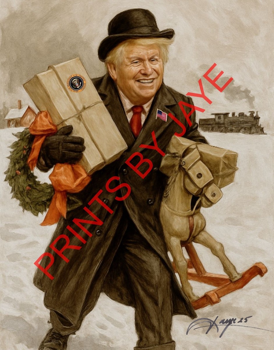 Donald Trump Vintage pencil drawing Print. Print of the original I'll be home for Christmas. 16X20 HAND SIGNED BY THE ARTIST... Special edition, Museum Quality life like picture. " I WILL BE HOME FOR CHRISTMAS 2025"