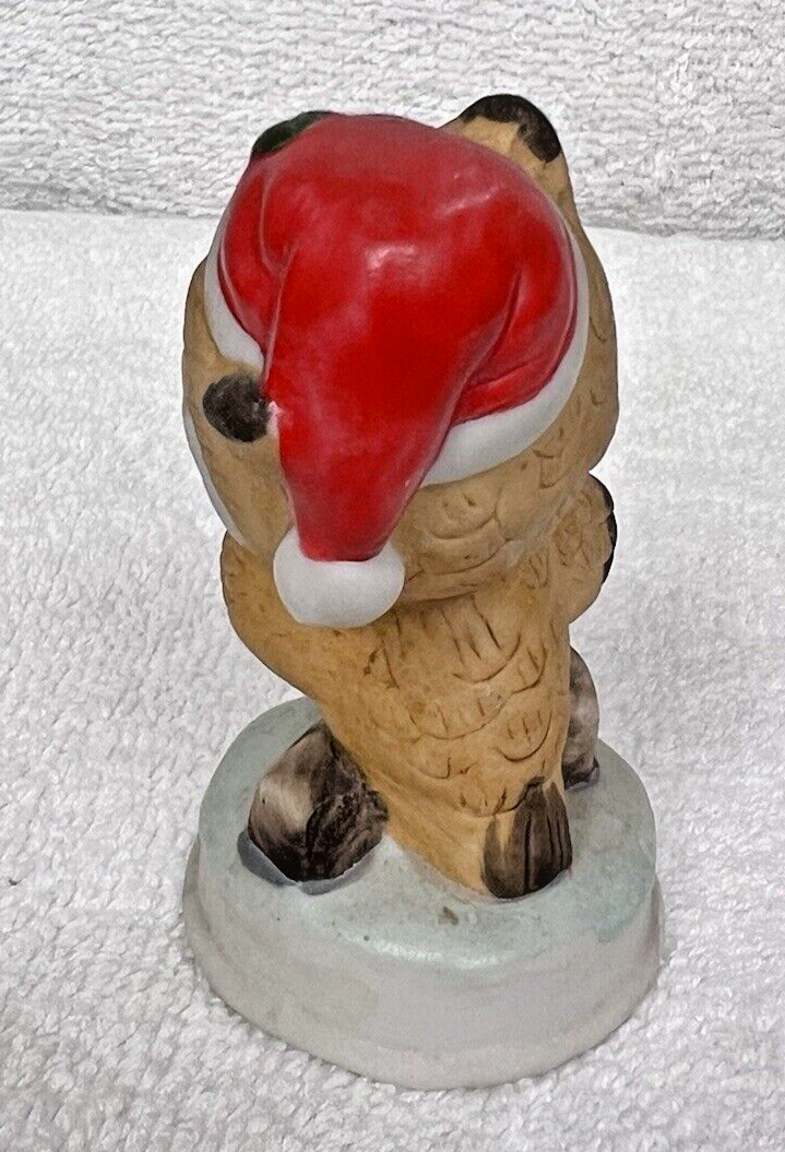 Vintage Big Eyed Owl Christmas Figurine Santa Hat Lantern 3 inches tall