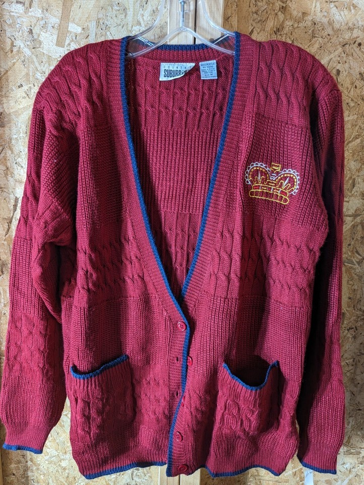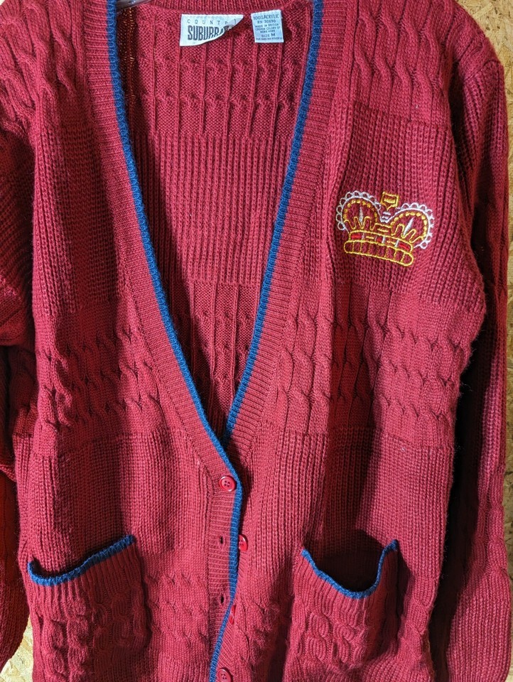 Country Suburban 100% acrylic ladies medium size red cardigan sweater