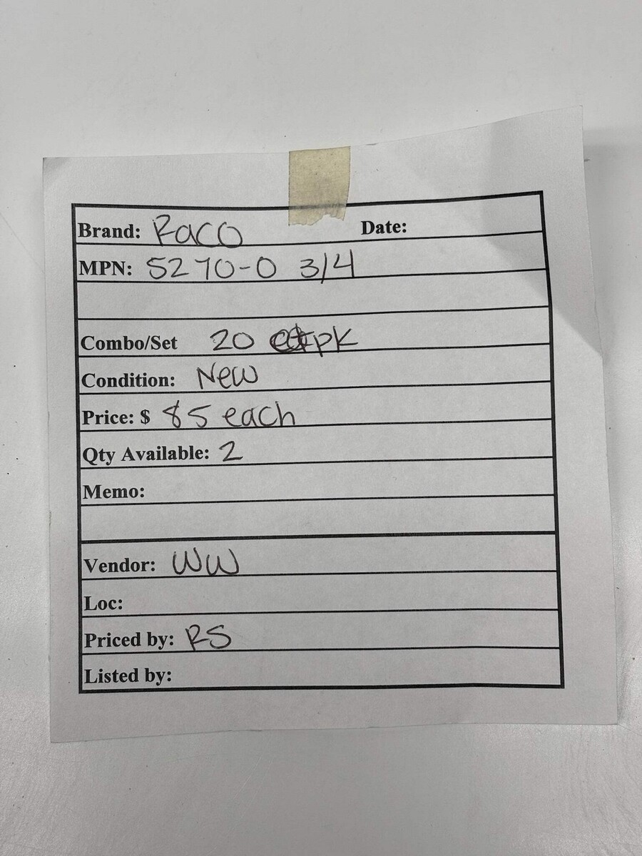 20 PK Raco 5270-0 3/4-Inch Weatherproof Die-Cast Closure Plug for Electrical Box New Same Day Shipping The Raco 5270-0 is a weatherproof closure plug designed to seal unused 3/4-inch NPT threaded openings in electrical boxes. It is made from die-cast zinc, providing strength, durability, and resistance to corrosion. The plug is suitable for outdoor and exposed installations, protecting boxes from moisture and debris. It is UL-listed and compatible with a variety of weatherproof electrical boxes and covers. The gray finish allows it to blend seamlessly with most metal enclosures. Listed by: Renee (Sales Team) "Everything in nature invites us constantly to be what we are.? ~Gretel Ehrlich (A positive moment brought to you by Help Resale) About Us Welcome to Help Resale, your go-to consignment shop where value meets quality. At Help Resale, we're dedicated to providing you with an exceptional shopping experience, whether you're looking to find the best deals or consign your items. Need to buy a product, but don't see it in our store? Please feel free to reach out to us and we will help you find it! Help Resale 7200 Fair Oaks Blvd Suite 120 Carmichael CA 95608 Business Hours: Monday-Friday: 9:00 am to 5:00 pm (PST) All product and company names are trademarks TM or registered trademarks of their respective holders. Use of them does not imply any affiliation with or endorsement by them.