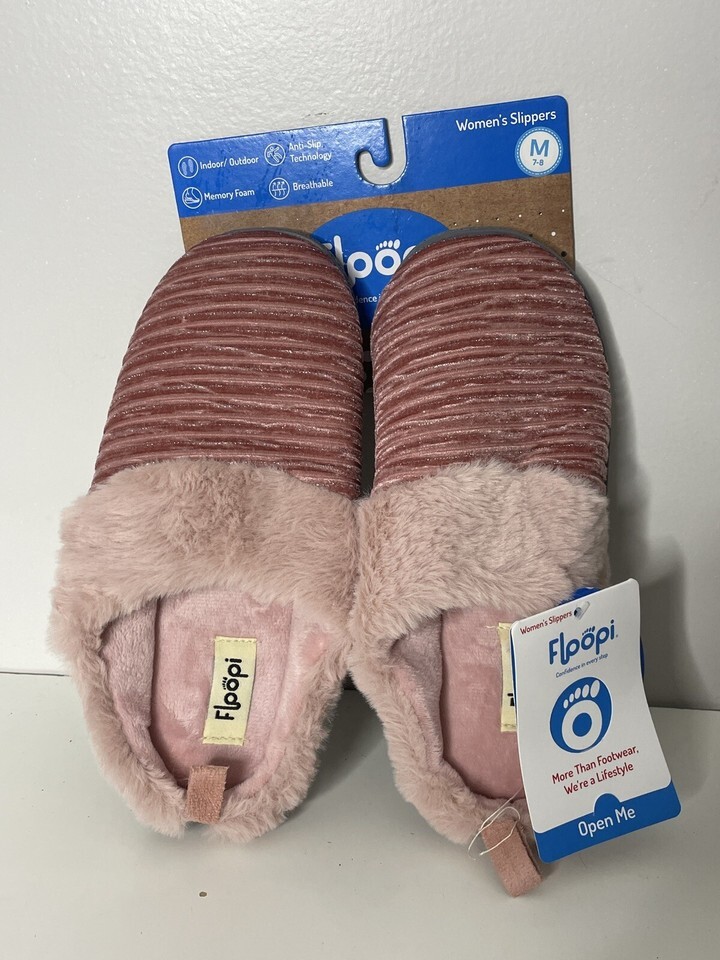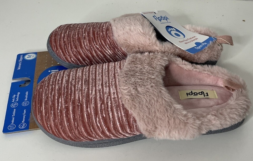 Floopi Womens Medium Aztec Fur Lined Trim Clog Closed Toe House Slipper Pink