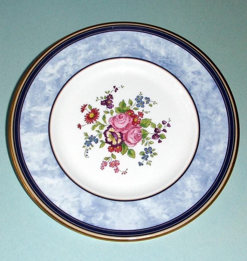 Royal Doulton Centennial Rose 4 PC Salad Plate 8" Blue Border Floral England New