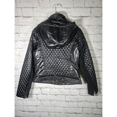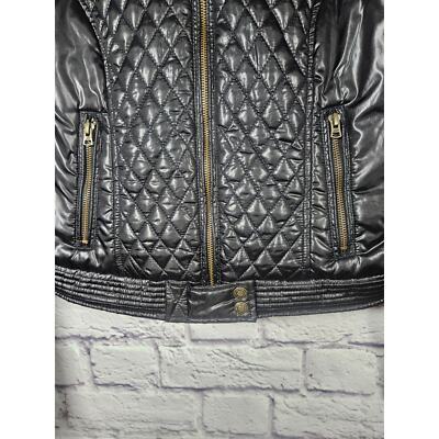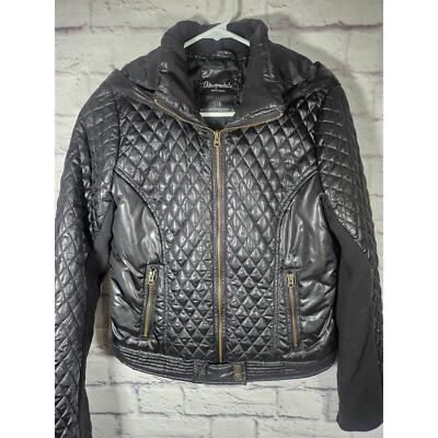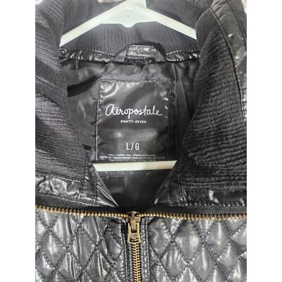 Aeropostale Women?s Black Jacket Size Large Quilted Zip Sleeve Pockets Full Zip