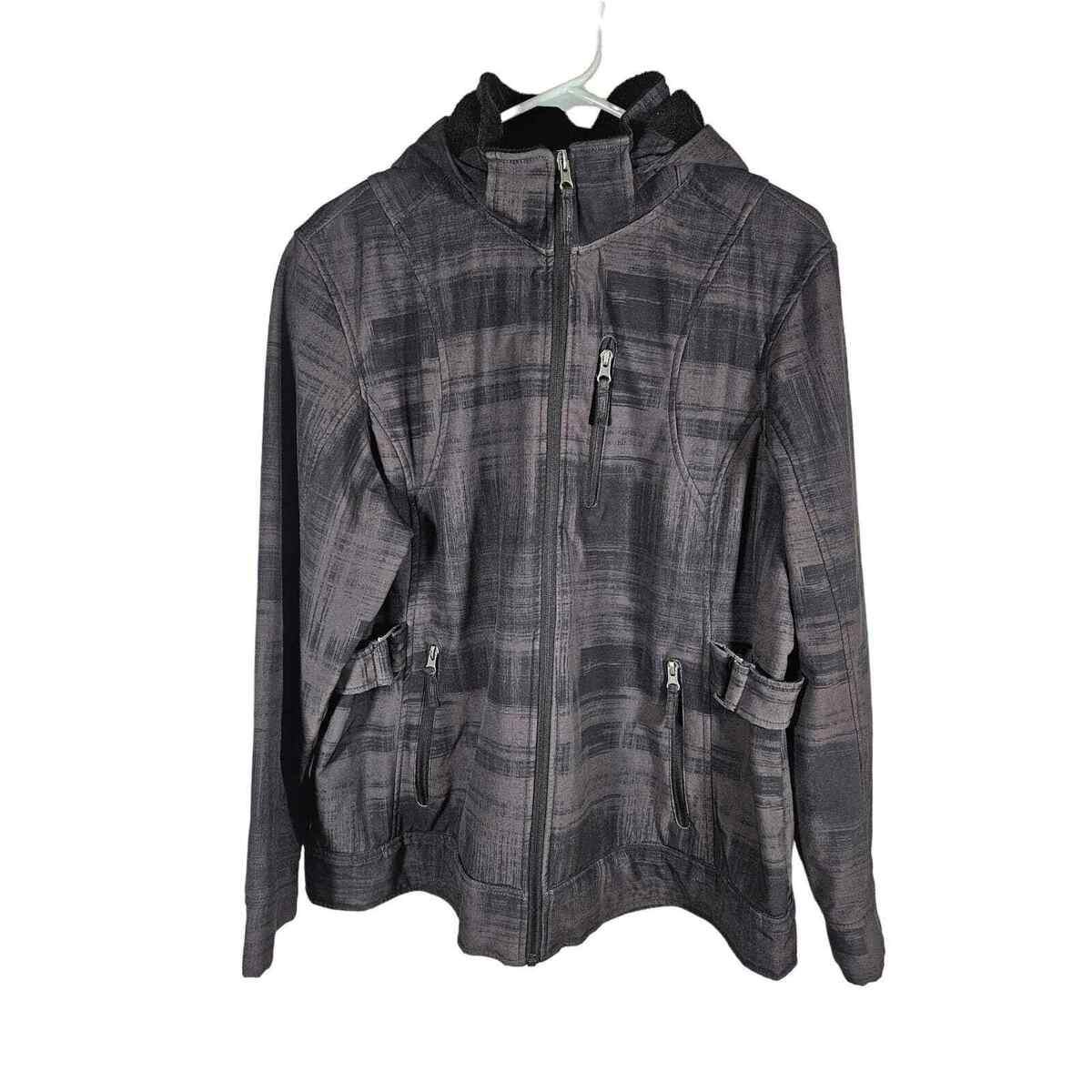Free Country Women's Hooded Jacket Coat Sherpa Lined XLarge Purple Dark Gray