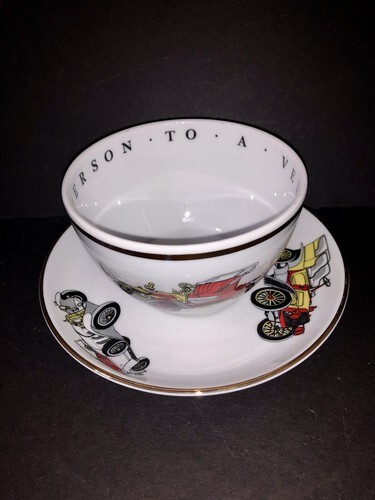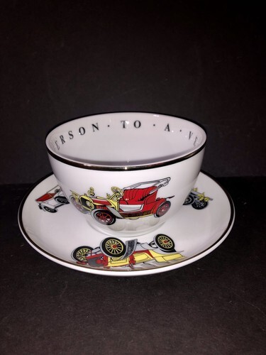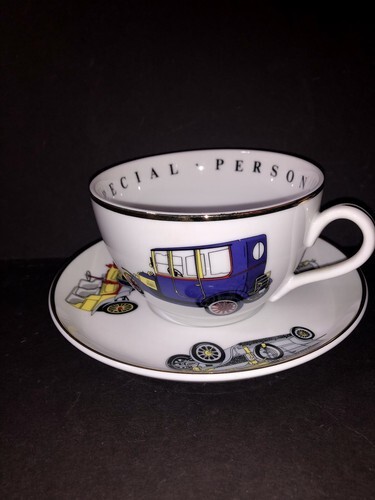 2 Vtg Princess House Porcelain Cup & Saucer Vintage Cars A Very Special Person