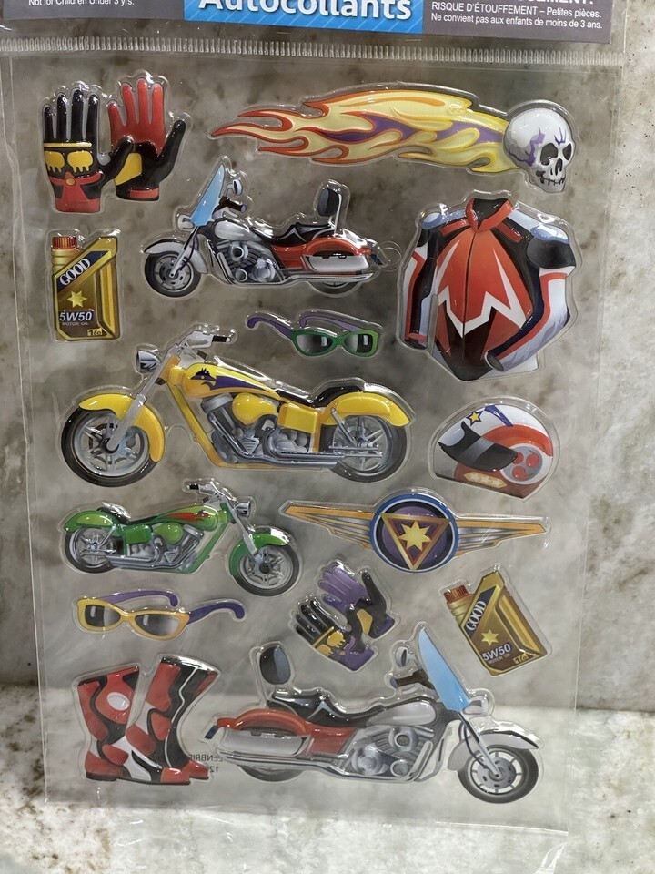 Motorcycles 1 Sheet Pack Dimensional Popup Stickers Autocollants. Jot. 15Pc