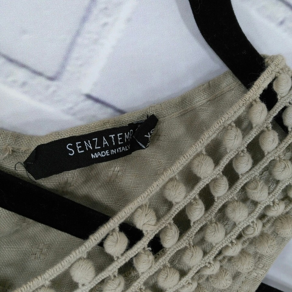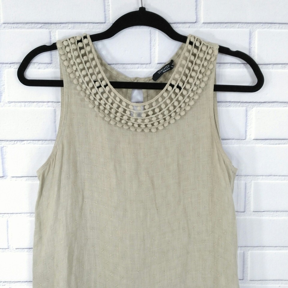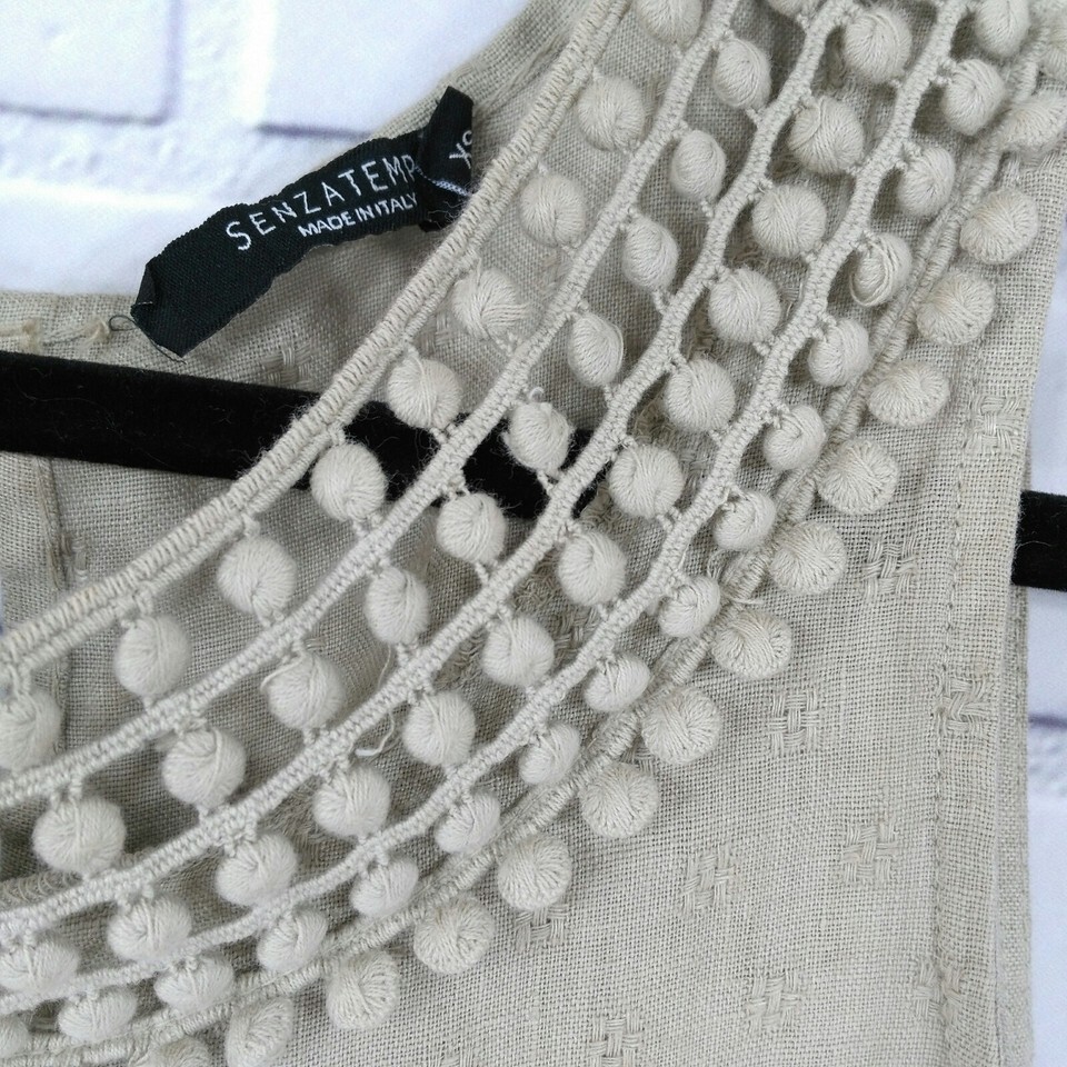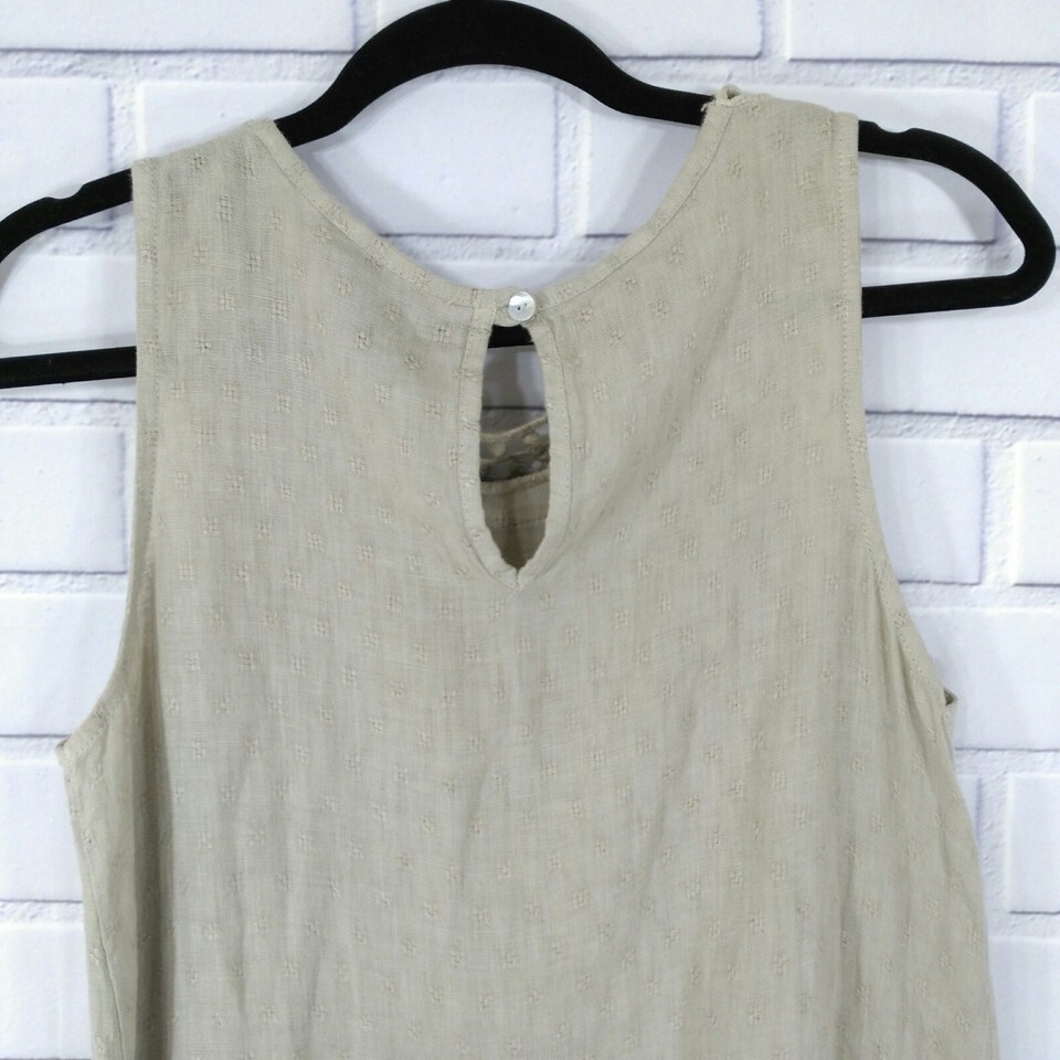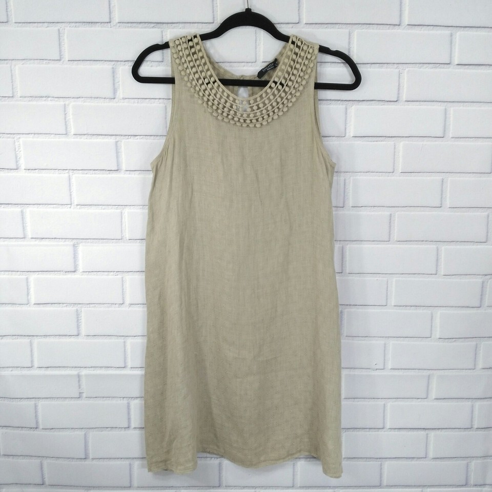 Senza Tempo Italian Linen Shift Dress Size XS Cotton Lace Front Sleeveless