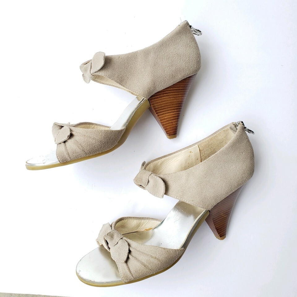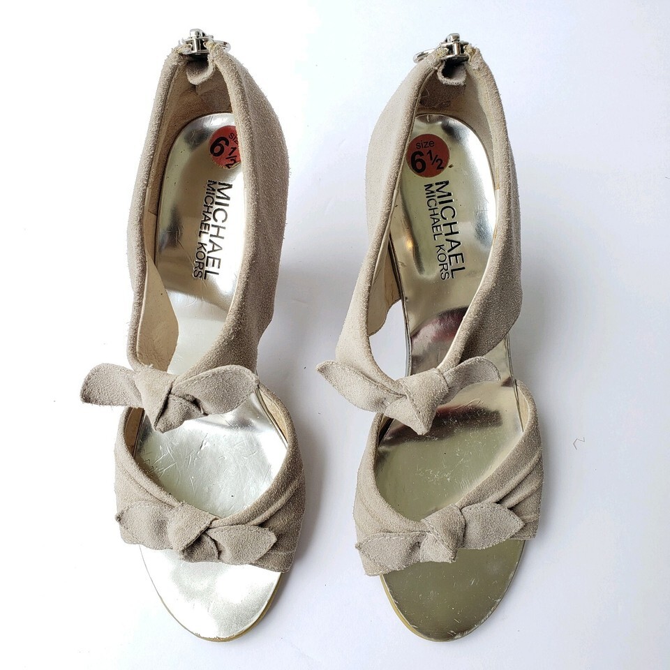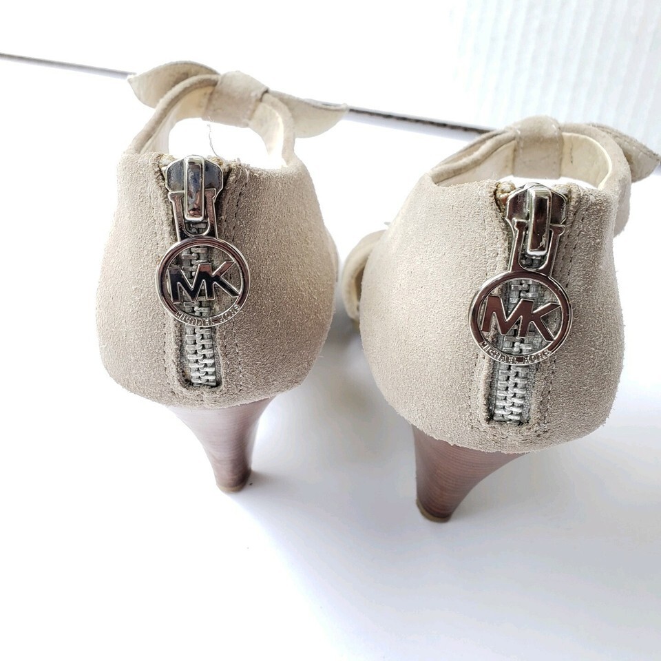 Michael Michael Kors Size 6.5 Suede Heels Bow Back Zip Closure Wood Like Heel