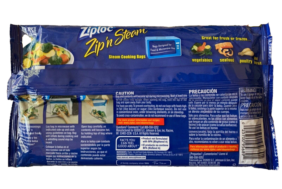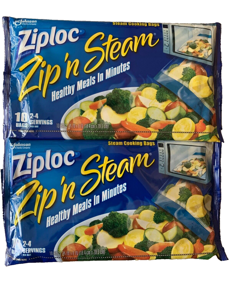 2 - Ziploc Zip 'n Steam Microwave Cooking Bags Ready Meals 10 Count (20 Total)