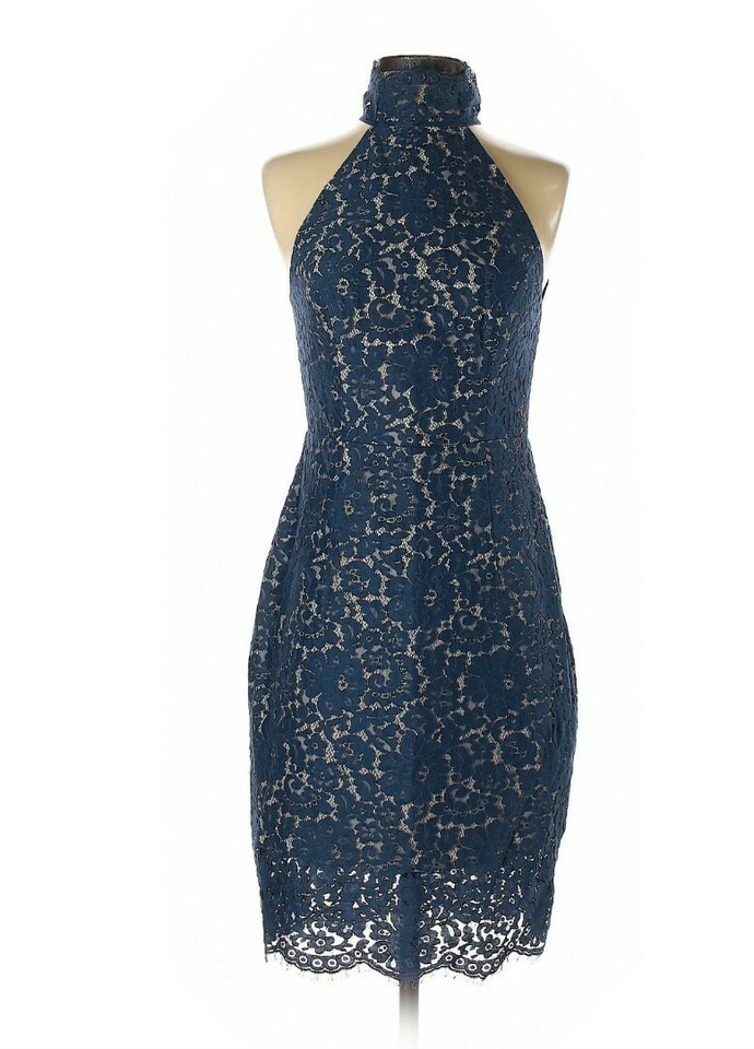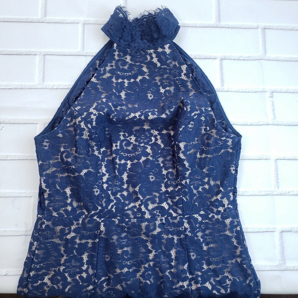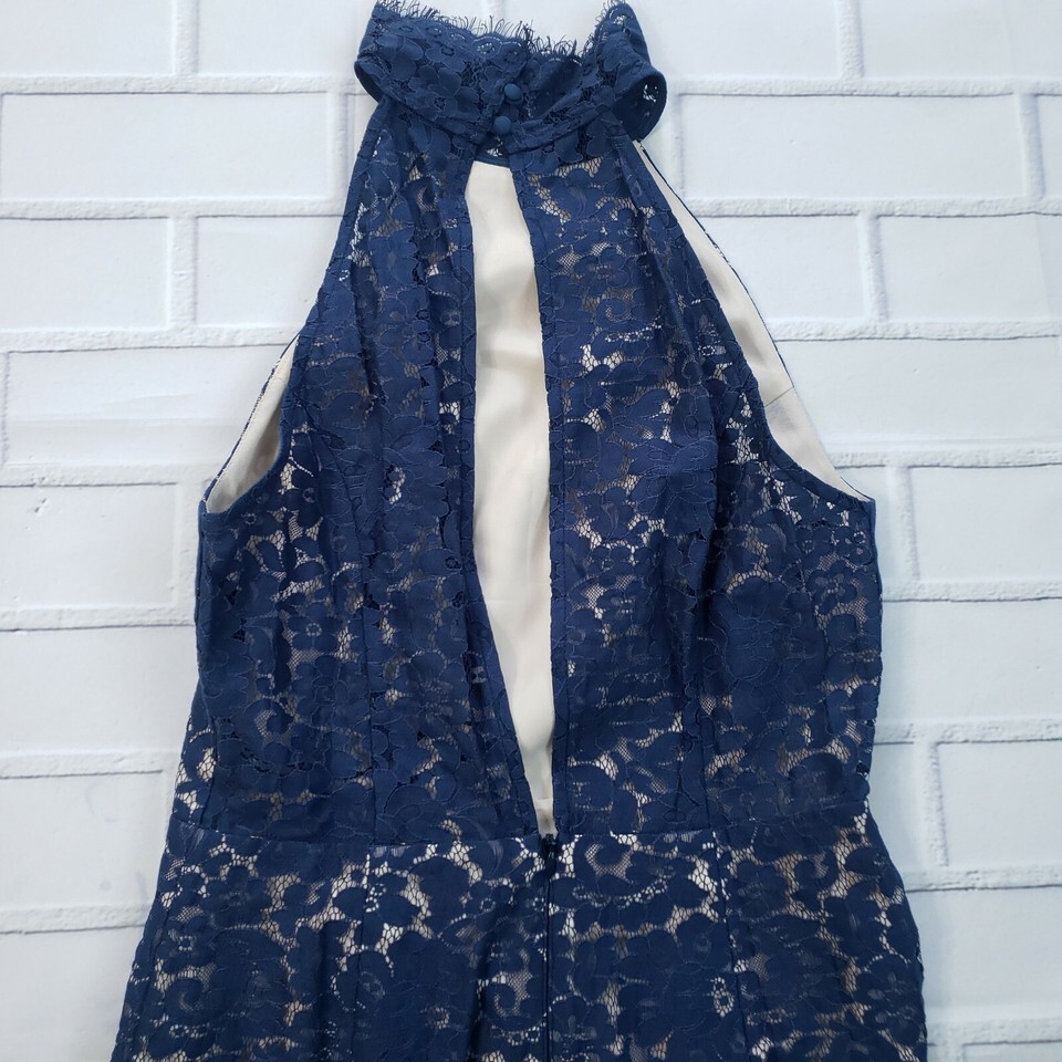 Keepsake Womens Size S High Neck FLy Now Lace Dress Blue Cocktail Party Prom