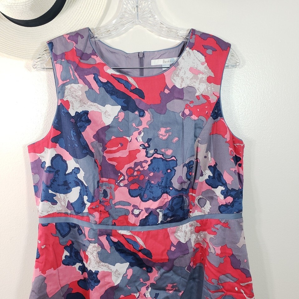 Boden Womens Size 12 Long Sheath Dress Red Multicolor Abstract Knee Length 8L