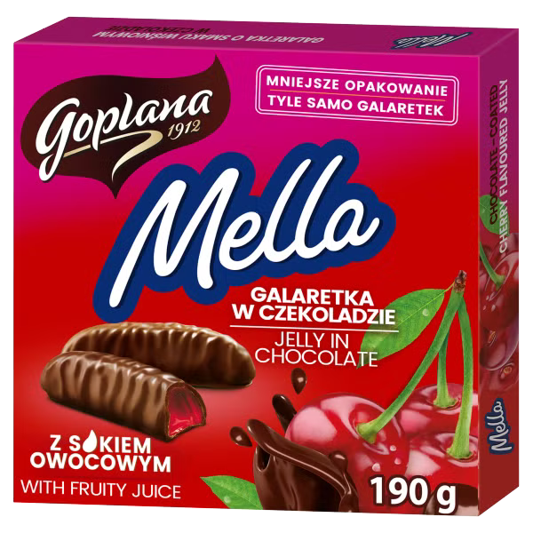 Goplana MELLA jelly in chocolate: CHERRY flavor 1 box/190g FREE SHIPPING