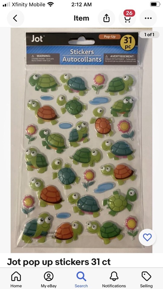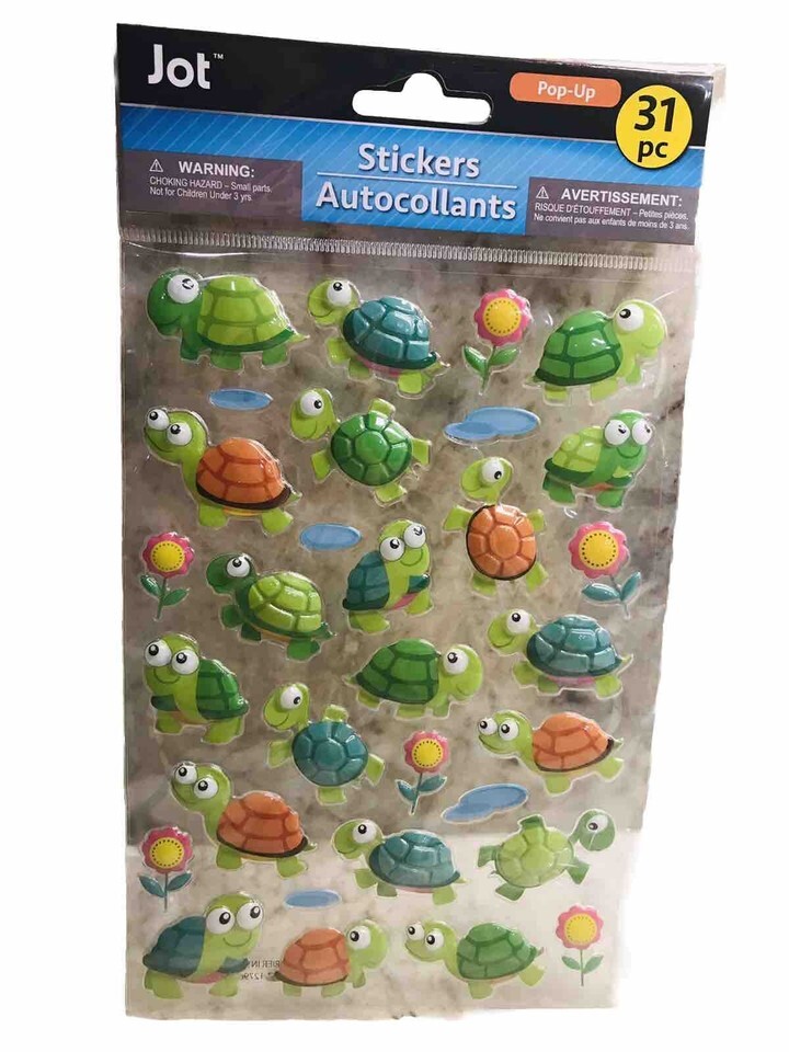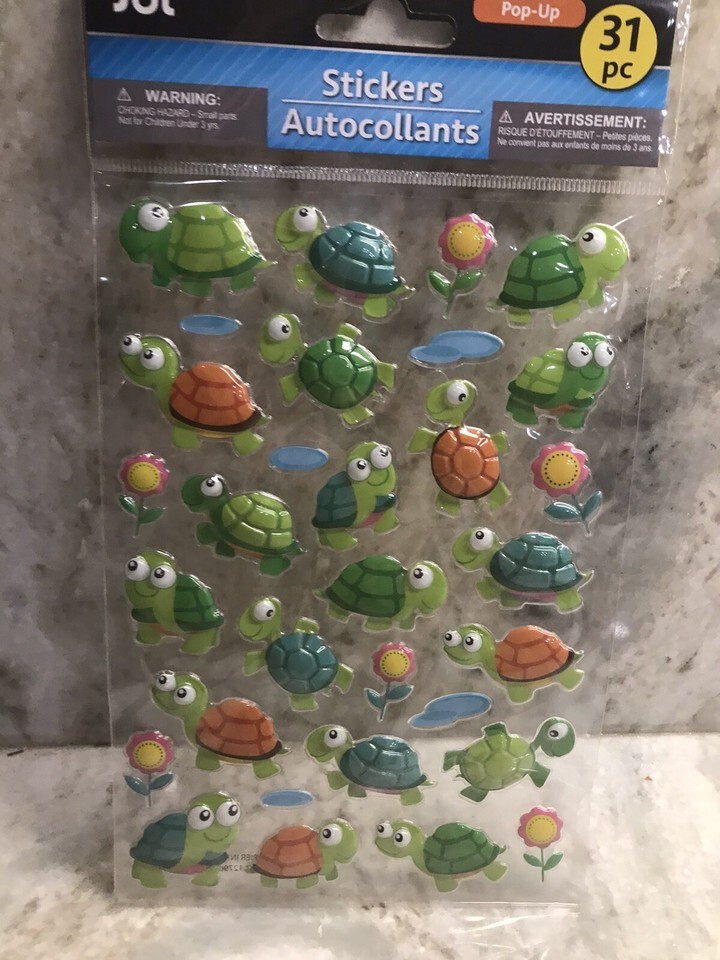 Turtles 1 Sheet Pack Dimensional Popup Stickers Autocollants. Jot. 31ct