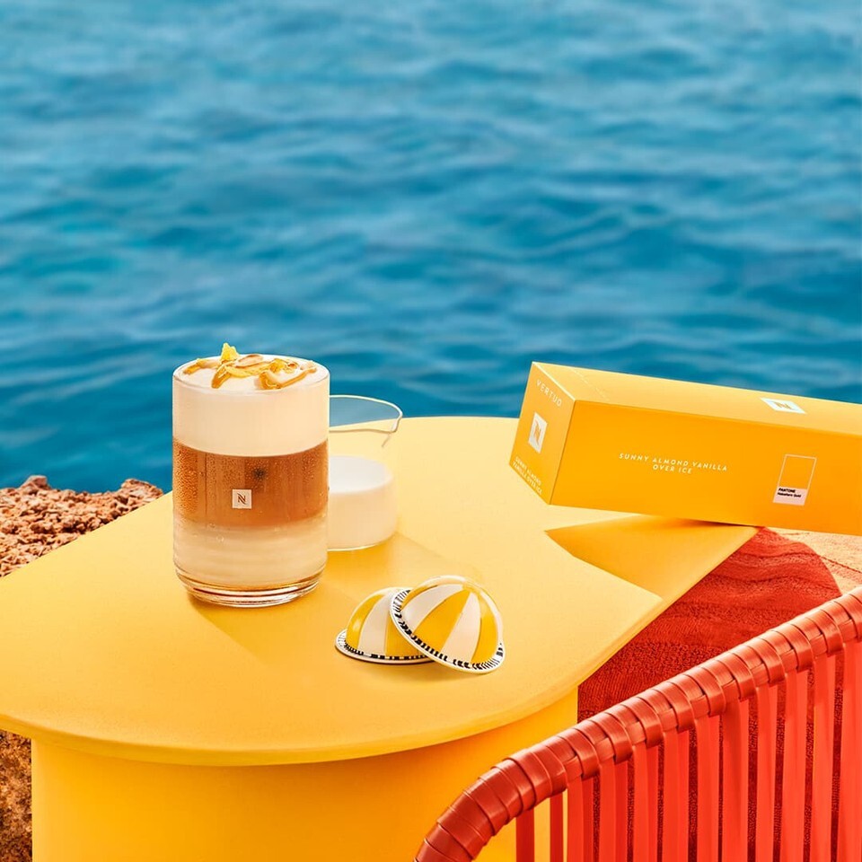 Why we love it: The smooth and refreshing taste of Barista Creations Sunny Almond Vanilla Over Ice immerses us in a Mediterranean summer. Our blend of lightly roasted Arabicas anchors the sunny flavors of the season in a coffee designed to pair perfectly with ice. Crafted by Nespresso, this coffee brings nuances of sun-drenched almonds and a burst of sweet vanilla to your summer. Extract one coffee capsule (80 ml) into a cup filled with ice cubes (180 g). And to enhance the experience, add cold water or cold milk (180 ml).