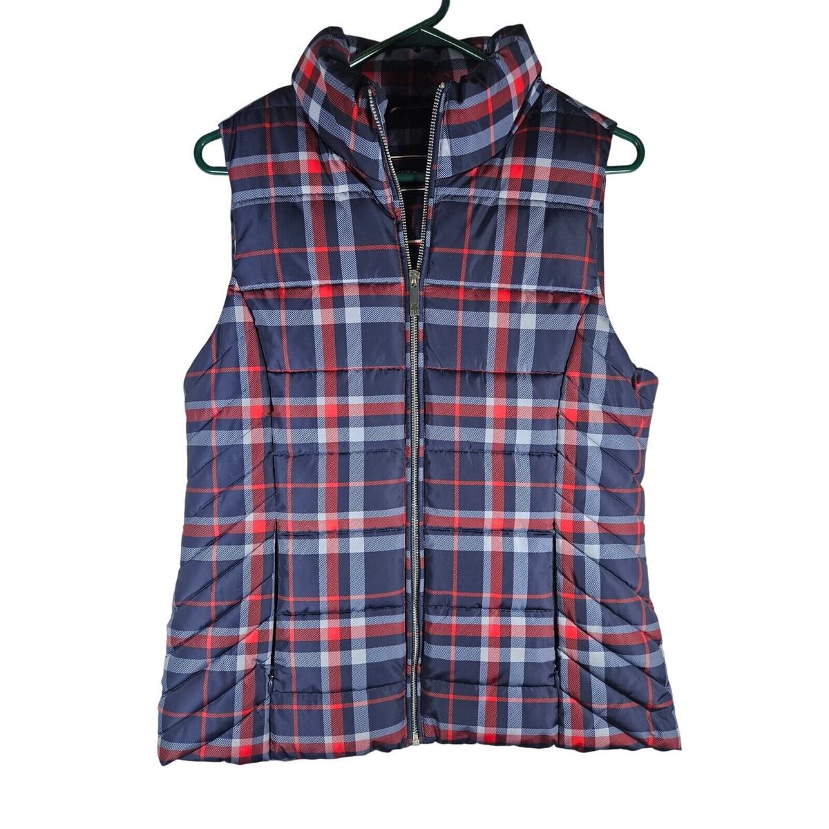 Tommy Hilfiger Womens Blue Red Plaid Designer Puffer Vest Size Small