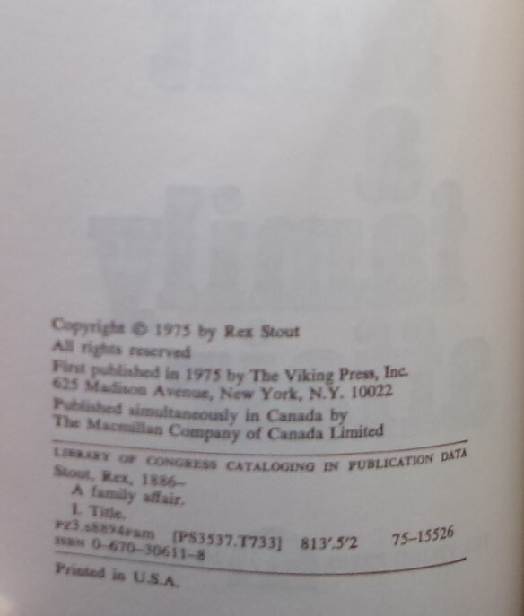 Rex Stout A FAMILY AFFAIR First edition 1975 and similar items