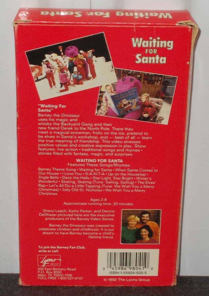 This is the original release of the beloved holiday special, "Waiting for Santa," featuring Barney the Dinosaur and the Backyard Gang. A must-have for any vintage media collector, Barney fan, or for sharing a nostalgic holiday tradition with a new generation!
