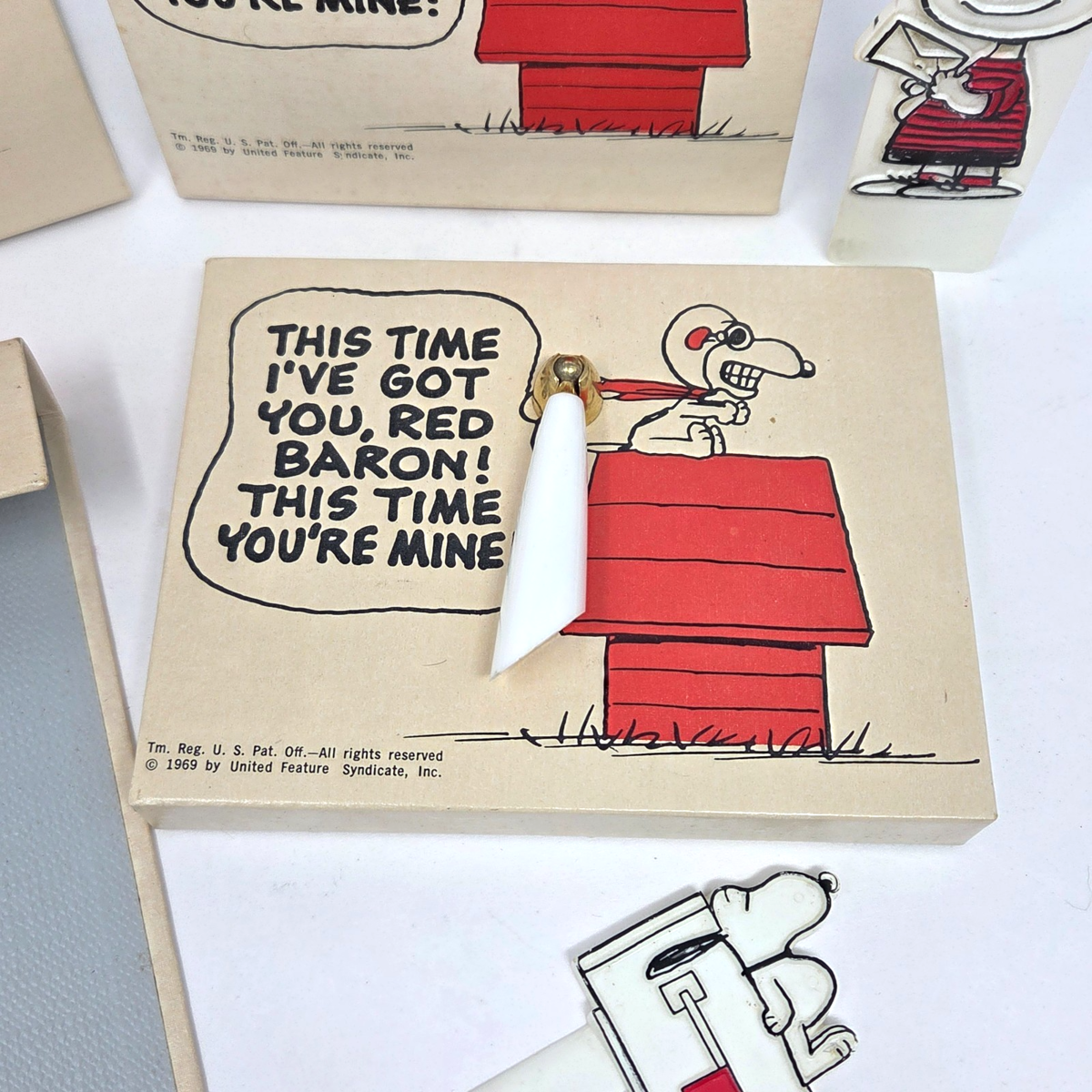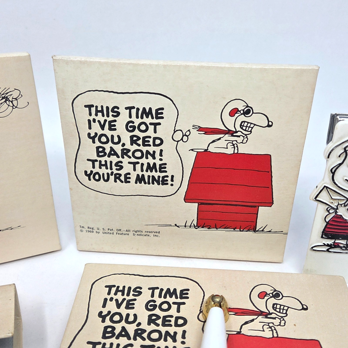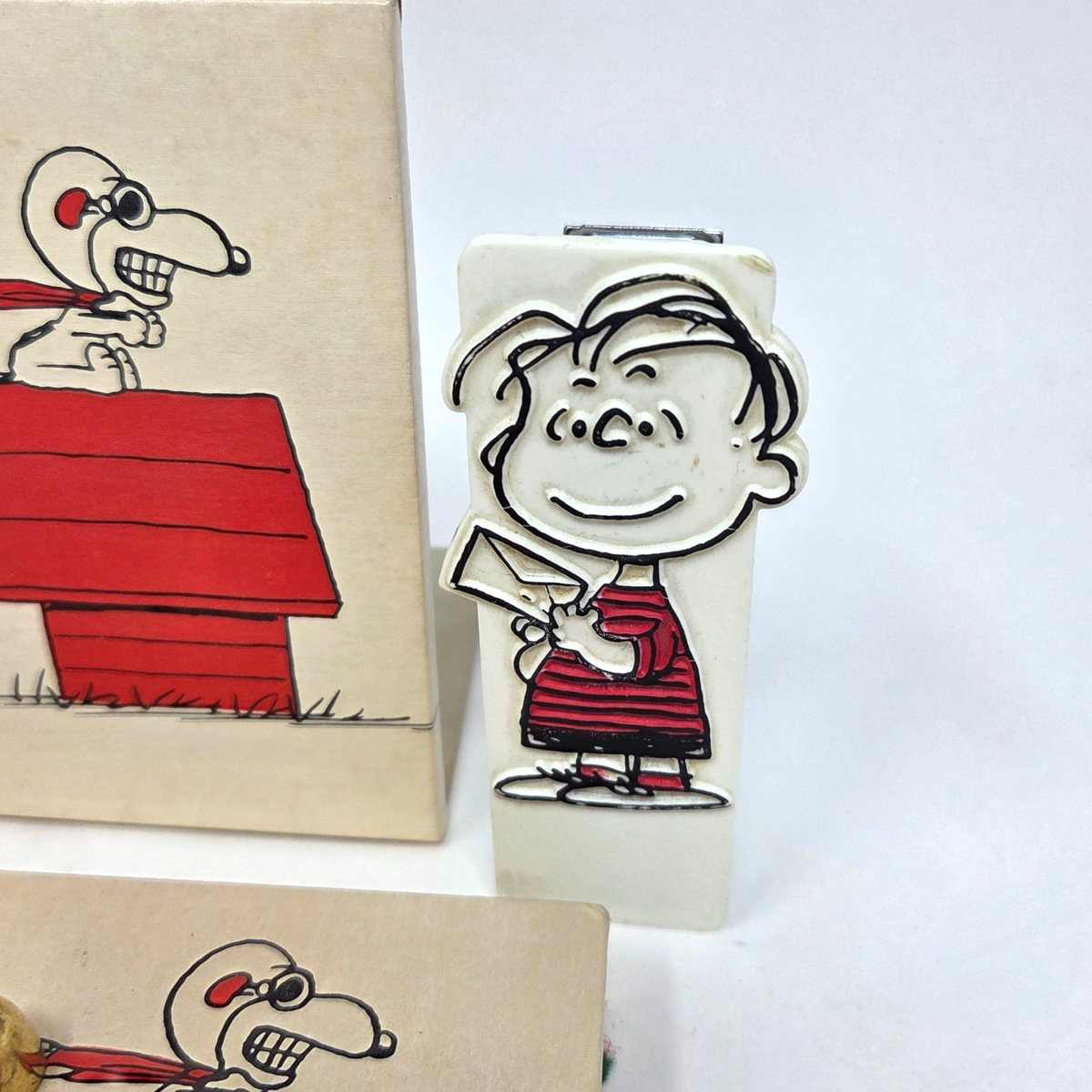 VINTAGE 1970s SNOOPY PEANUTS OFFICE DESK SET LETTER OPENER LINUS STAPLER