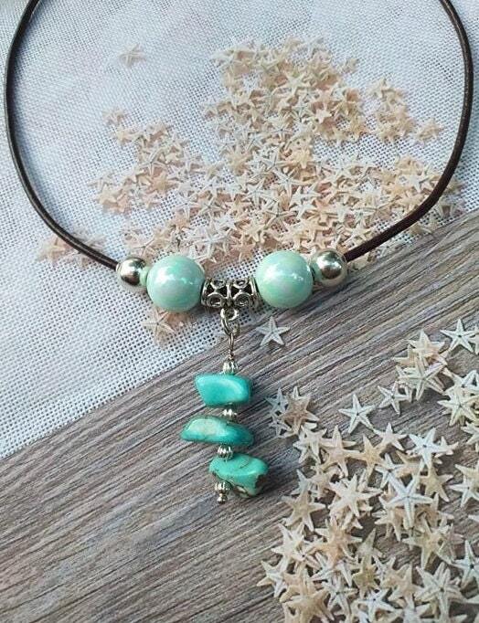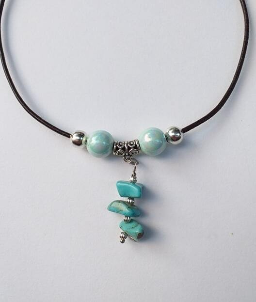 Turquoise necklace Leather necklace Boho necklace Bohemian necklace silver necklace gemstone necklace Gypsy necklace