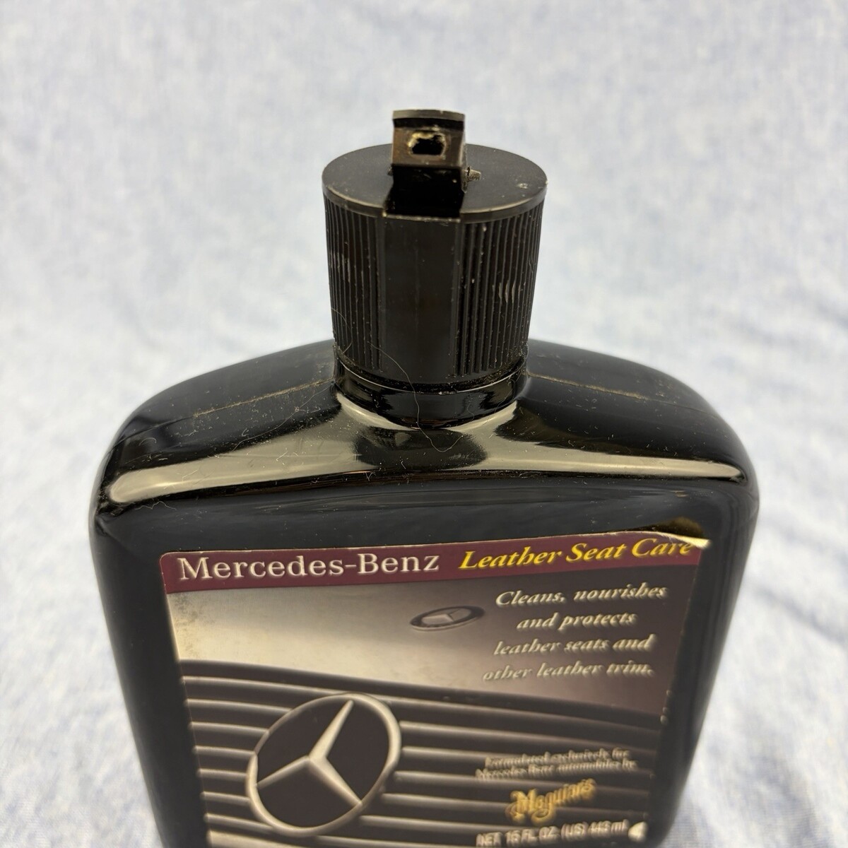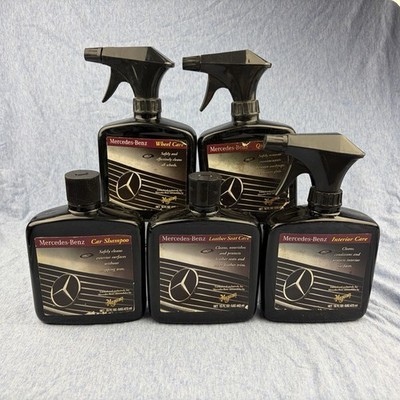 Set of 5 discontinued Meguiar?s Mercedes-Benz car care and cleaning products. Includes Quick Wipe spray, Wheel Care spray, Interior Care spray, along with bottles of Car Shampoo and Leather Seat Care. All bottles are 16 fl oz, except for the Leather product, which is 15 fl oz. The bottle of Car Shampoo appears to be full, while the rest of the products have been used to varying degrees; see product weights in pictures. The bottles and labels show varying signs of wear; please see pictures for exact conditions. Ships next day!
