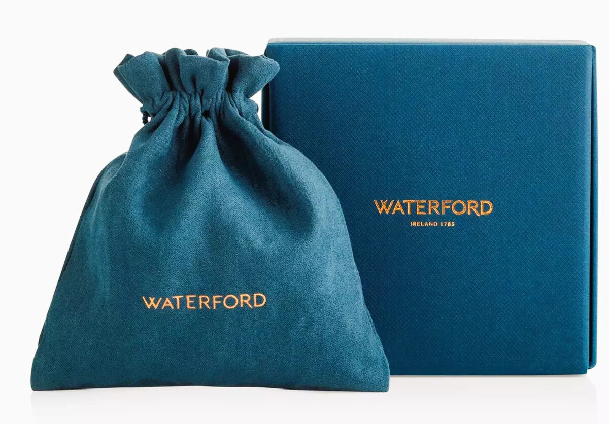 Carefully wrapped in tissue and packaged in a cloth Waterford bag