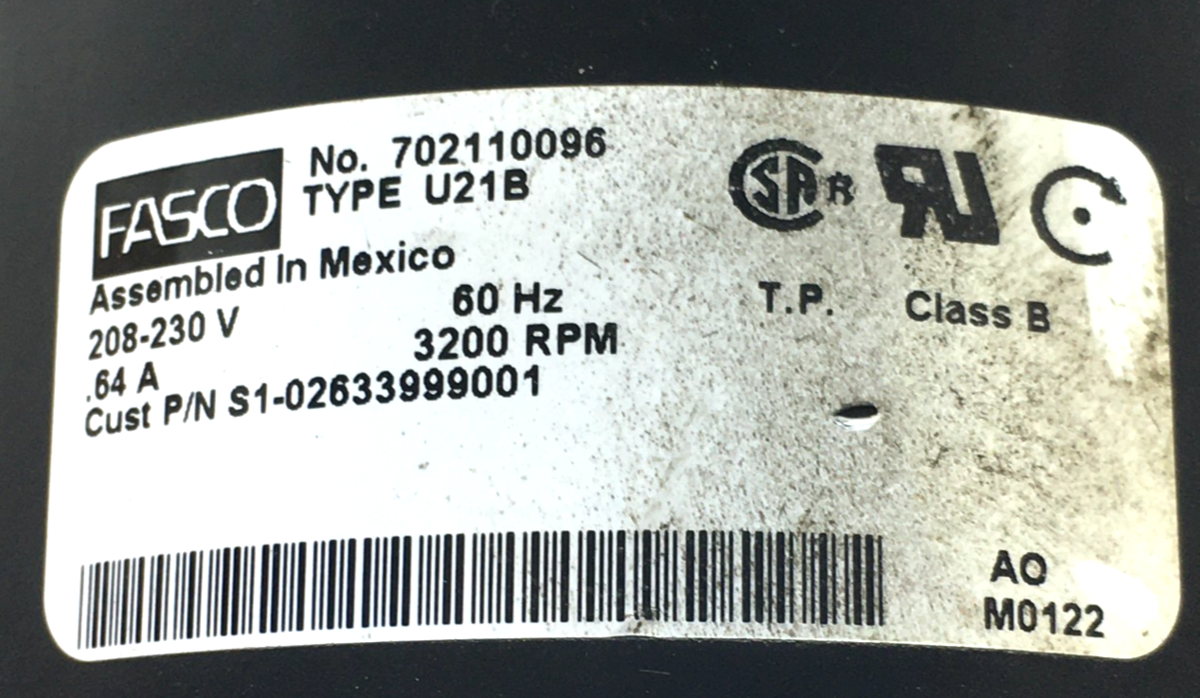 FASCO 702110096 Draft Inducer Blower Motor Assembly S1-02633999001 used #MG951