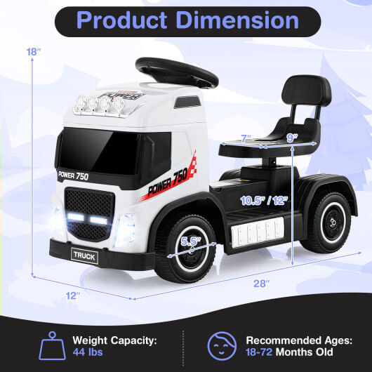 6V Kids Electric Ride-on Truck with Height Adjustable Seat-White