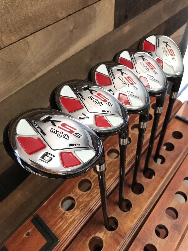 Replace Your Entire difficult to use iron set with the Majek K5 all hybrid iron set! Majekally improve your Hybrid-Iron game! Pure Golf Engineering: Majek Hybrid was Co-Engineered by members of the UCLA's engineering department. This unique relationship and pure engineering approach created the Majek All Hybrid Iron Set. Benefits of the Majek Hybrid: -More Weight Positioned Behind The "Sweet Spot" -Deeper Cavity Back Creates A Tighter Shot Dispersion, Which Increases The Accuracy On Off Center Hits. -Aerodynamic Design Creates A Reduction In Drag, Which Leads To Higher Club Head Speeds -Wide To Thin Crown Design Creates A Lower CG To Promote Higher Launch Angle For More Distance -Lightweight Premium Graphite Shaft Promotes Faster Swing Speed For Greater Distance. -Black Crown And Arrow Markers Make Alignment Easy And Eliminates Glare. Support A Local Company: Your Custom Made Majek Golf Hybrid Is Assembled By Hand In Riverside, CA, USA And Delivered Direct To Your Door.