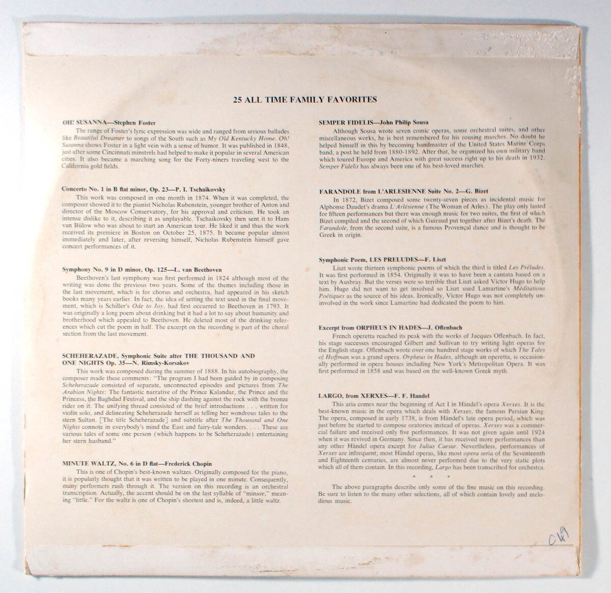 25 All Time Family Favorites (1967) Vinyl LP Oh Sussana, Chopin, Sousa
