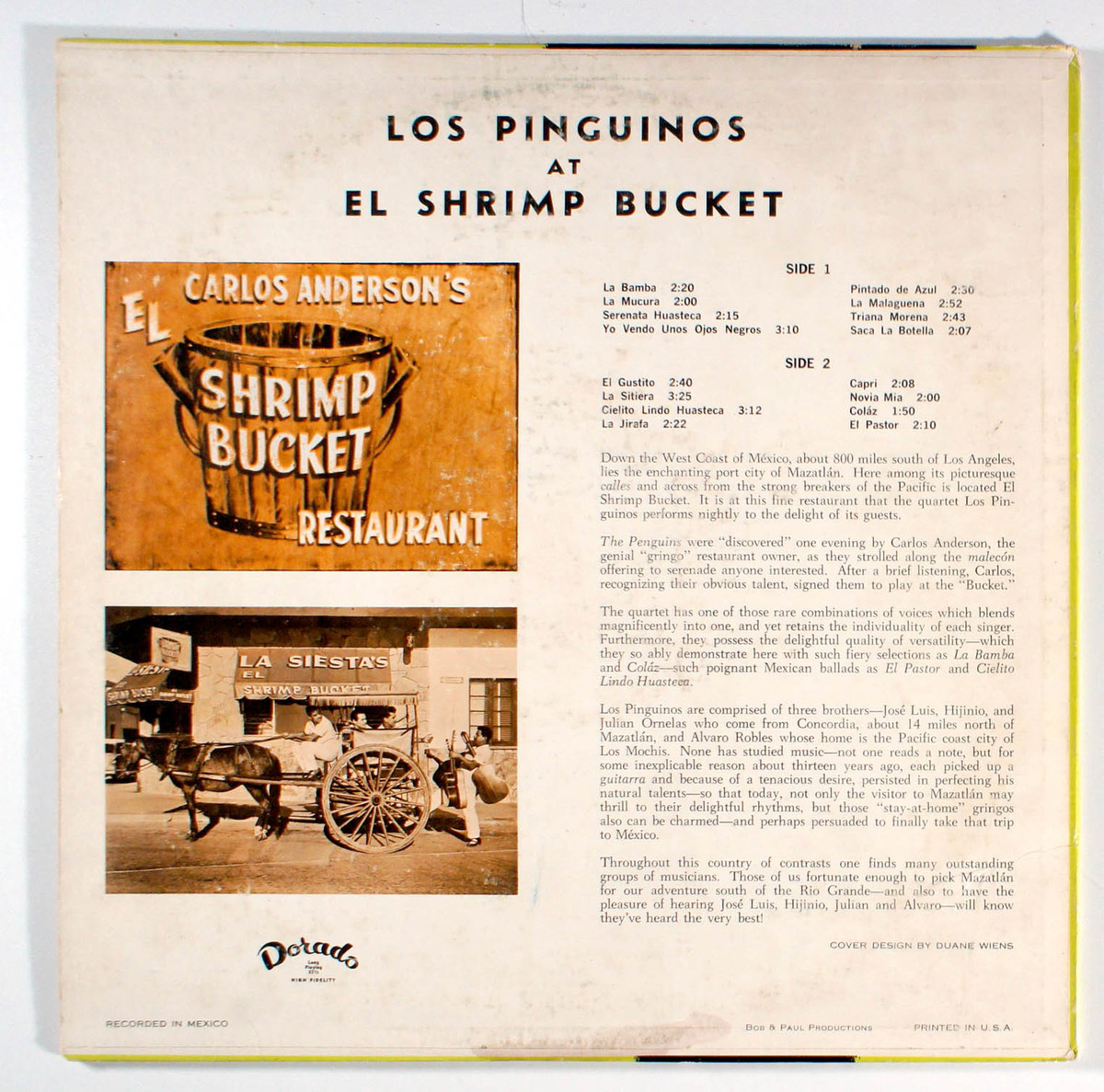 Los Pinguinos - At El Shrimp Bucket (1964) Vinyl LP Mexican Mariachi Trio