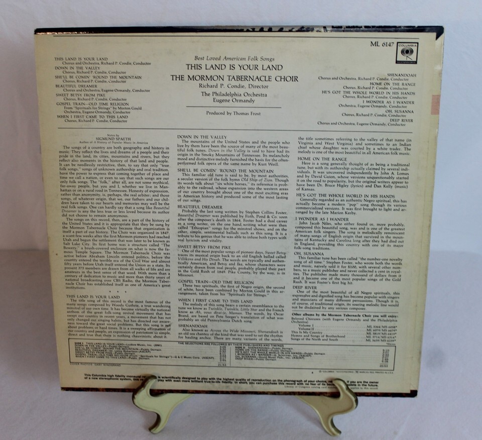 This Land Is Your Land Mormon Tabernacle Choir Philadelphia Vinyl Record DHR41
