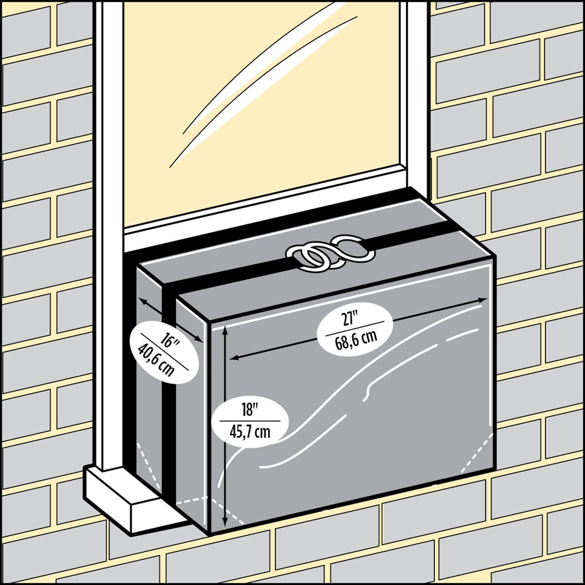 Product description: The M-D Air Conditioning Cover protects the unit from water, ice, dust and drafts during the winter. Save on energy by extending the life of your air conditioning unit. For installation, simply place the cover over the unit and hold cover in place with elastic hooks.