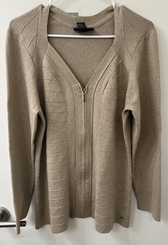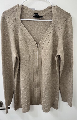 NWT Lane Bryant Womens Plus 18/20 Gold Shimmer Zip Up Cardigan Long Sleeve NEW