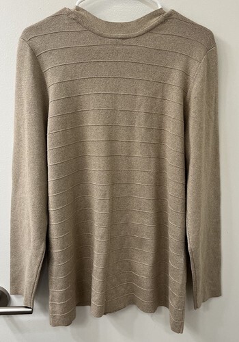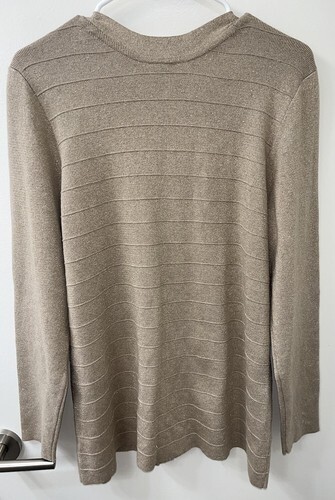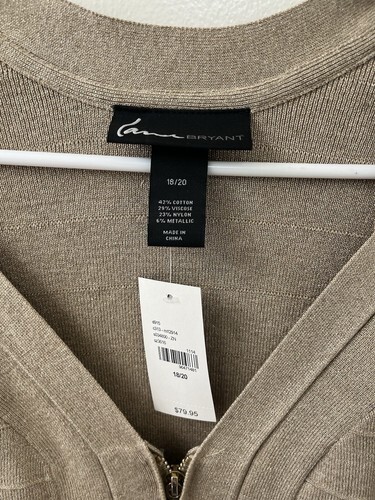 Add some sparkle to your wardrobe with this beautiful Lane Bryant cardigan! The gold shimmer fabric is perfect for any metallic-themed occasion, and adds texture to your outfit. It has a flattering fit, while the full zip closure allows for easy wear. The cardigan is a size 18/20 and is suitable for wear in winter, fall, and spring, and is ideal for any occasion. Whether you're dressing up or down, this Lane Bryant cardigan is a great addition to your wardrobe. Please let me know if you have any questions!