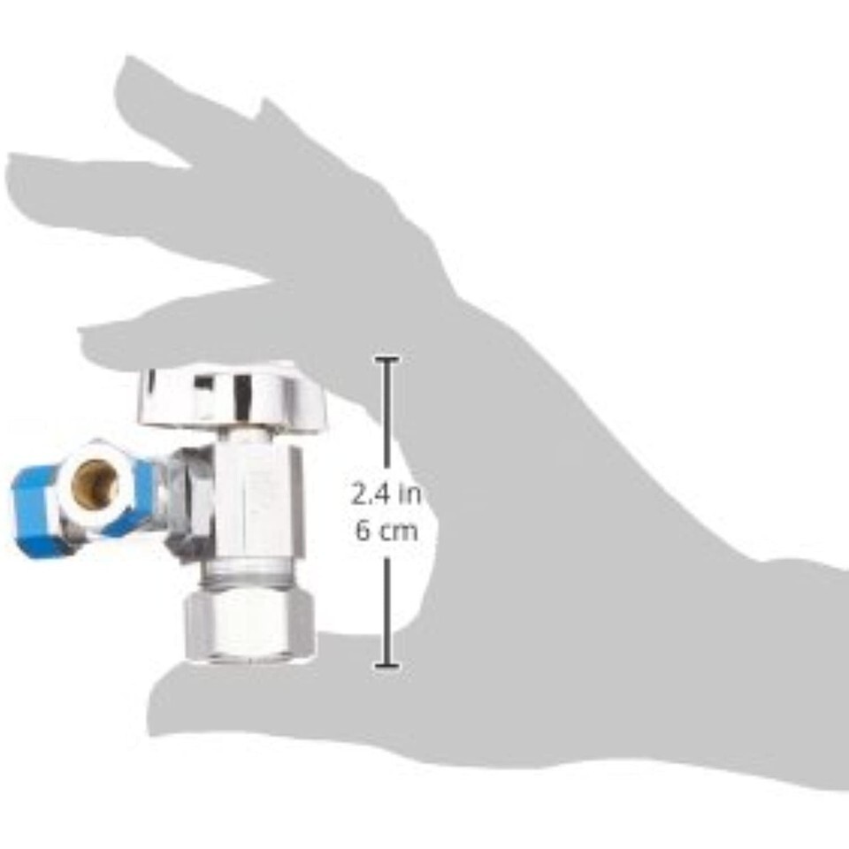 Product Description LASCO 06-9355 Chrome Plated Brass Quarter Turn Dual Outlet Angle Stop Valve 5/8-Inch OD (1/2-Inch Rigid Copper) X 3/8-Inch OD Compression X 3/8-Inch OD Compression. Inlet 5/8-Inch OD compression x 3/8-Inch OD compression x 3/8-Inch OD compression. Quarter turn dual angle stop valve. Chrome plated brass body. Lead free product. meets California AB-1953. Vermont. and new federal standards for low lead applications. Uniform Plumbing Code (UPC) certified and approved - Industry standard ensuring product quality and safety. From the Manufacturer LASCO 06-9355 Chrome Plated Brass Quarter Turn Dual Outlet Angle Stop Valve 5/8-Inch OD (1/2-Inch Rigid Copper) X 3/8-Inch OD Compression X 3/8-Inch OD Compression. Inlet 5/8-Inch OD compression x 3/8-Inch OD compression x 3/8-Inch OD compression. Quarter turn dual angle stop valve. Chrome plated brass body. Lead free product. meets California AB-1953. Vermont. and new federal standards for low lead applications. Uniform Plumbing Code (UPC) certified and approved - Industry standard ensuring product quality and safety.