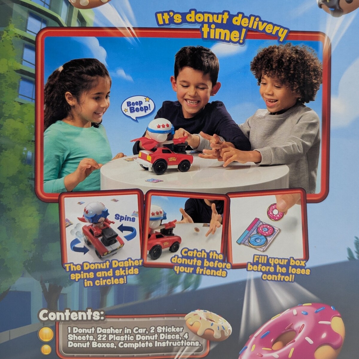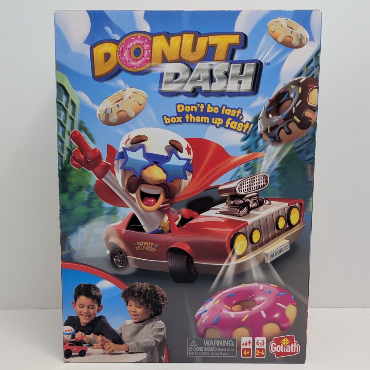 The Goliath Donut Dash Game is a fun, fast-paced action game designed to keep kids laughing and moving! Players race to collect colorful donuts using their donut wands while practicing coordination, matching skills, and friendly competition. Simple to learn and perfect for young children, Donut Dash brings sweet excitement to family game night.