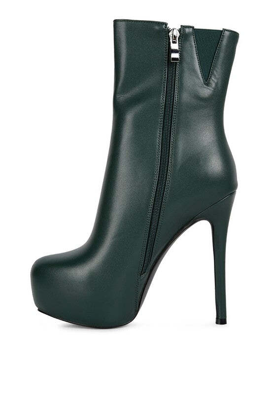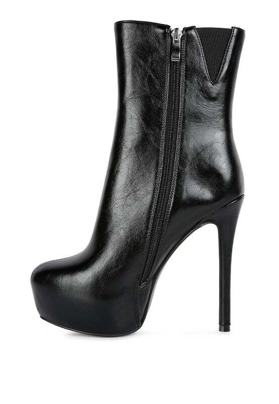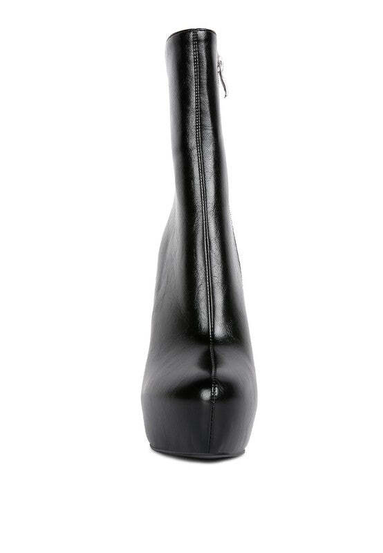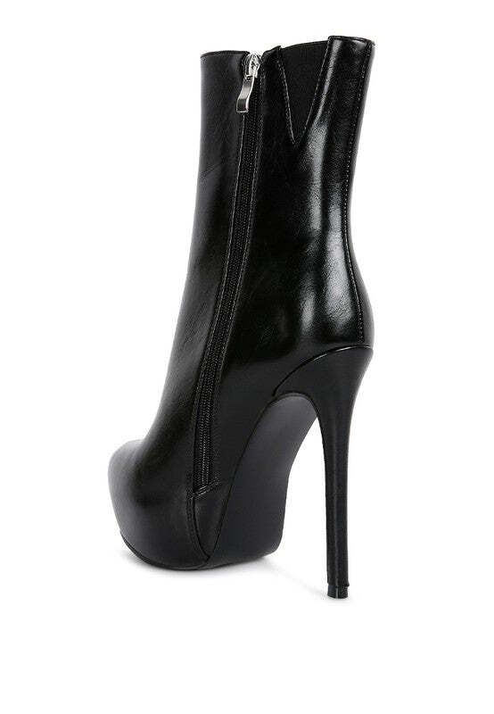 Wholesome Winter boot! The stiletto heeled bootie perched on high platform gives one additional height. It is made using high quailty faux leather with elasticated gussets at side back. Fits well onn to the feet curve, looks gracious.